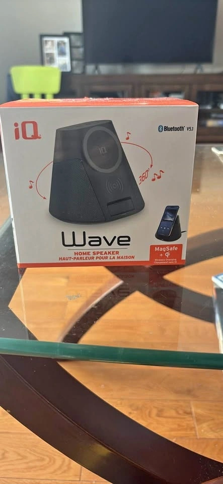 Brand new iQ Wave Home Speaker with Bluetooth 5.1, MagSafe, and Qi wireless charging. Still sealed in original packaging.