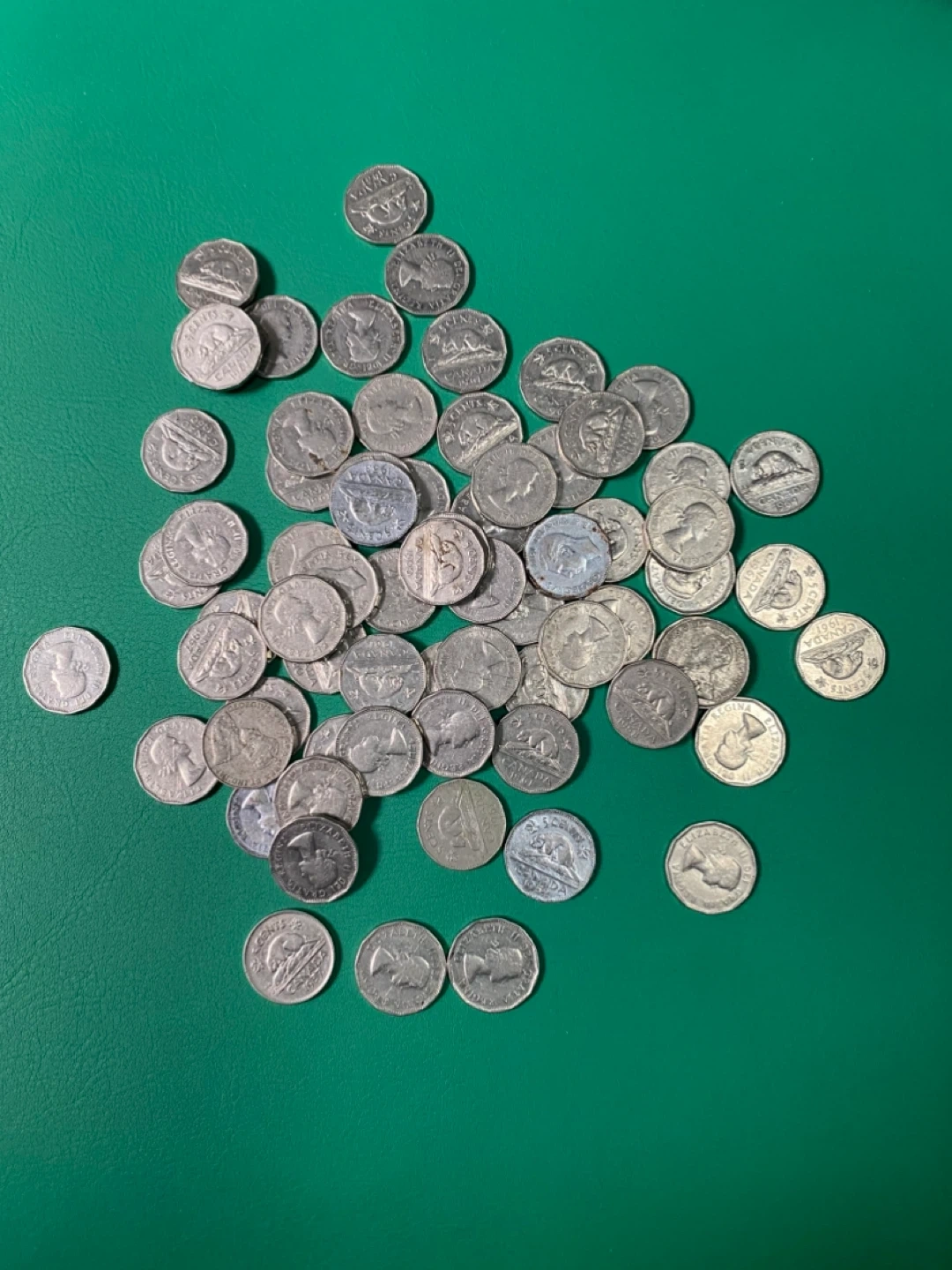 This is a collection of Canadian nickels. It's a mix of various years, featuring the beaver on the reverse.