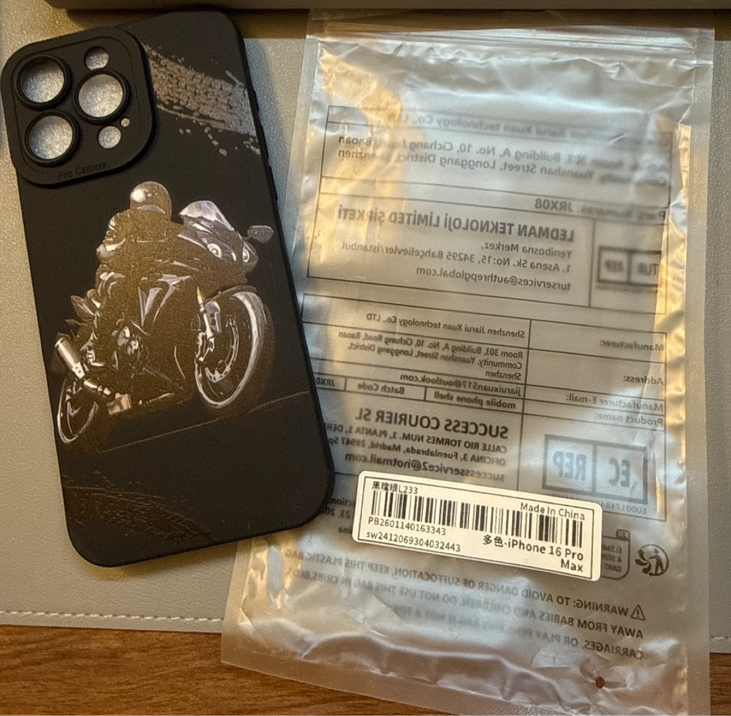 iPhone 16 Pro Max Case - Black with Motorcycle Design