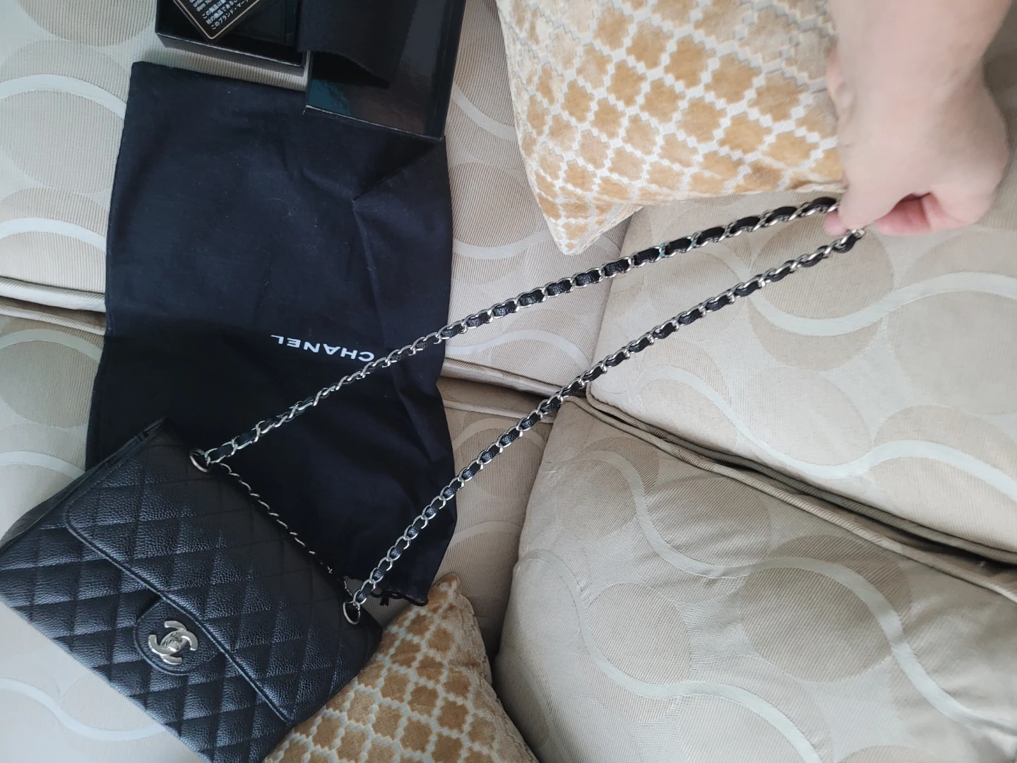 It features silver-tone hardware, chain strap and iconic interlocking CC turn-lock closure. Comes with original dust bag, sorry no card. Serial # intact