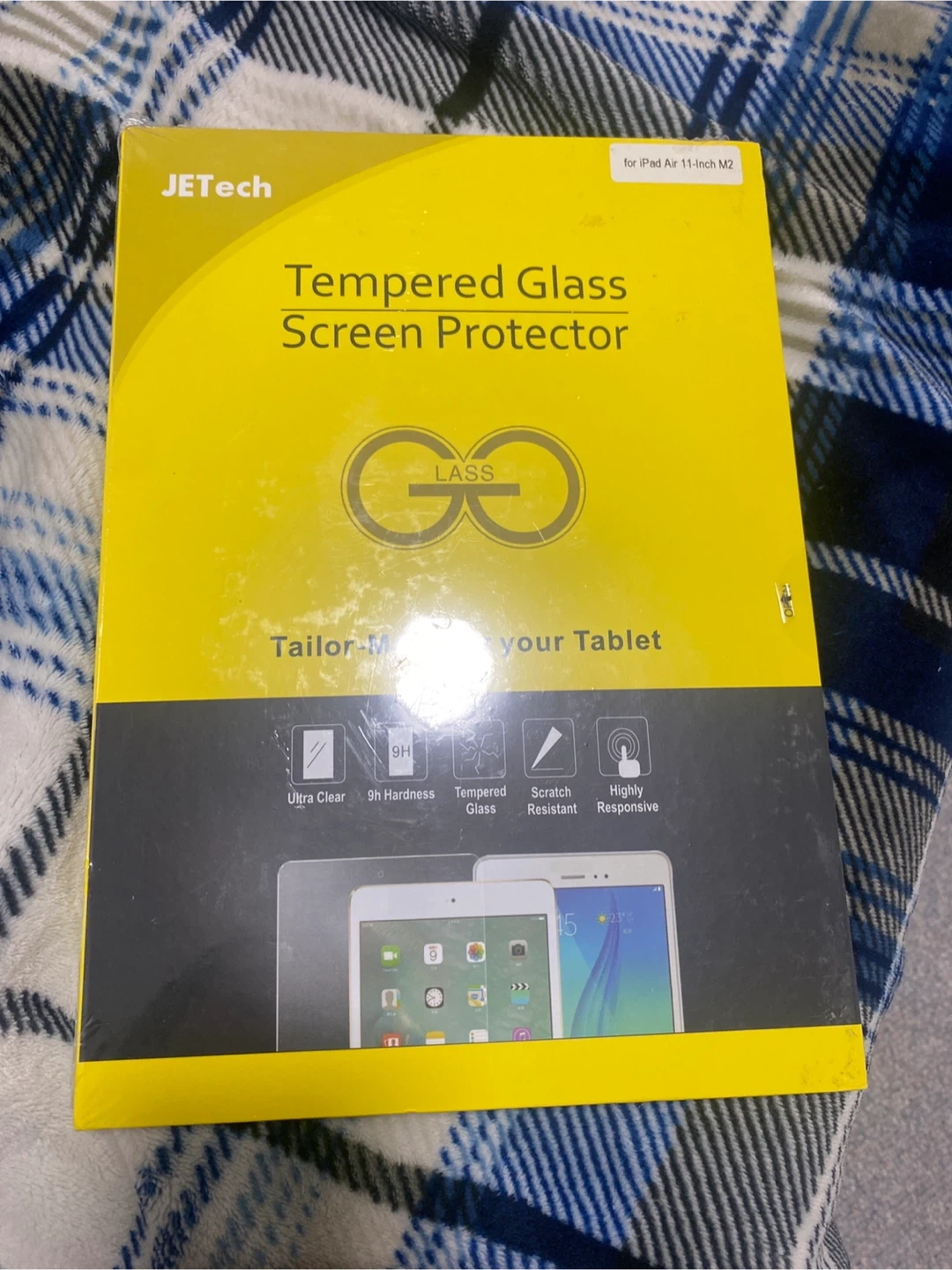 This is a JETech tempered glass screen protector. It's ultra clear, 9H hardness, scratch resistant, and highly responsive. Designed for your tablet.