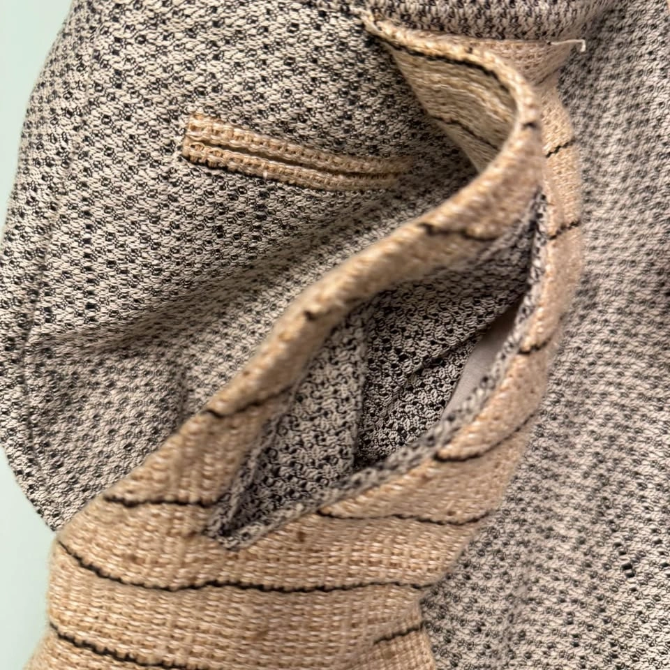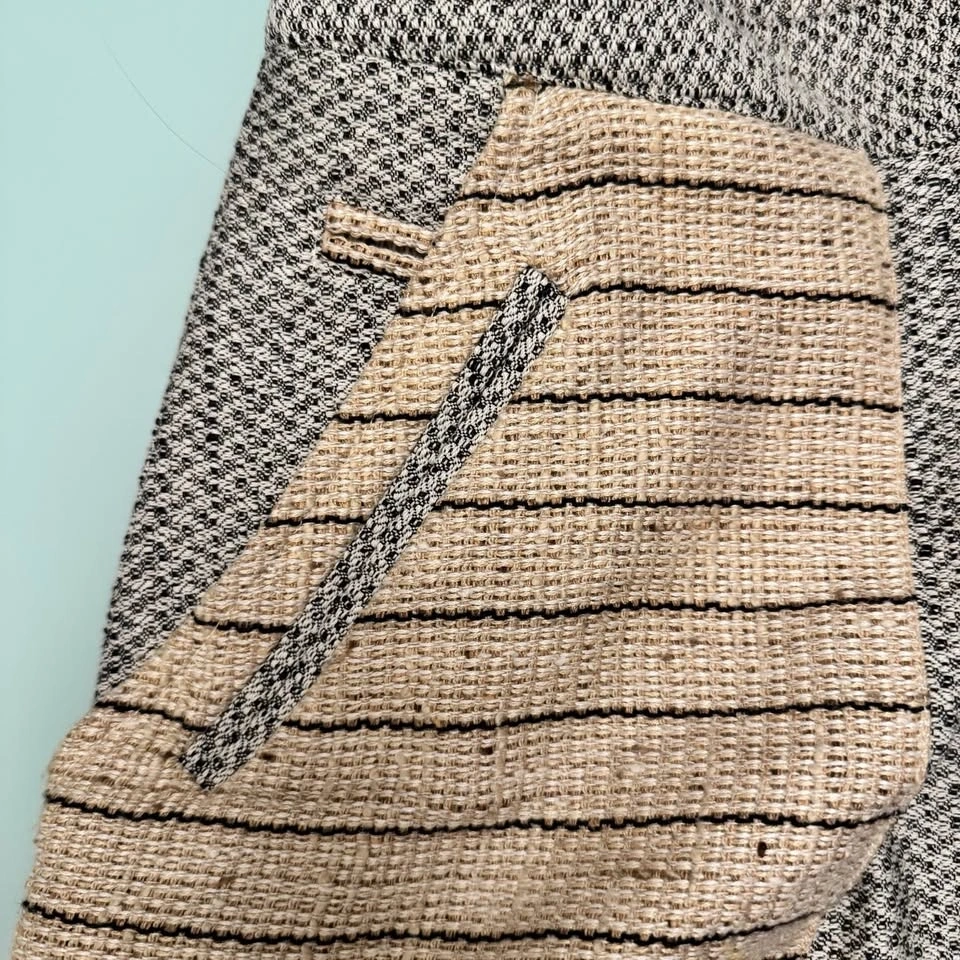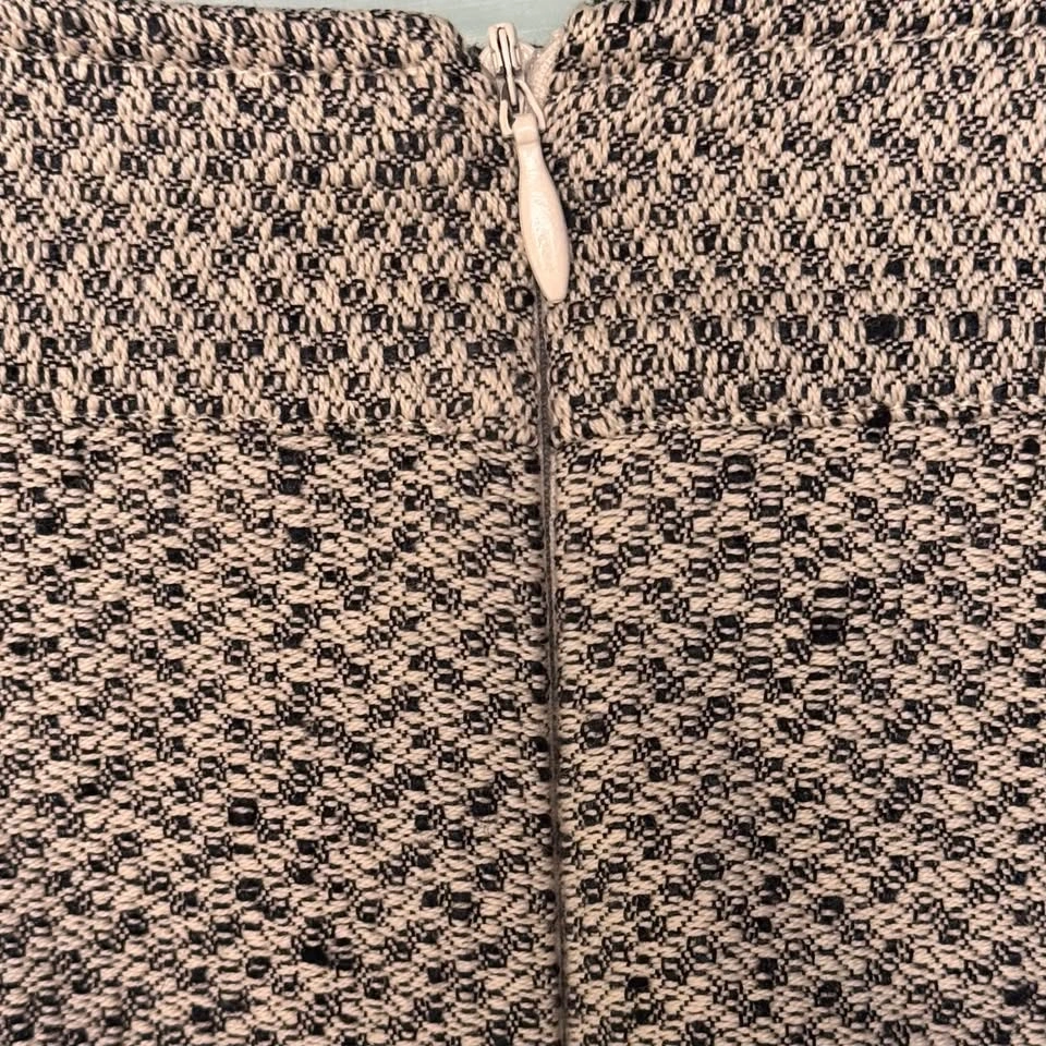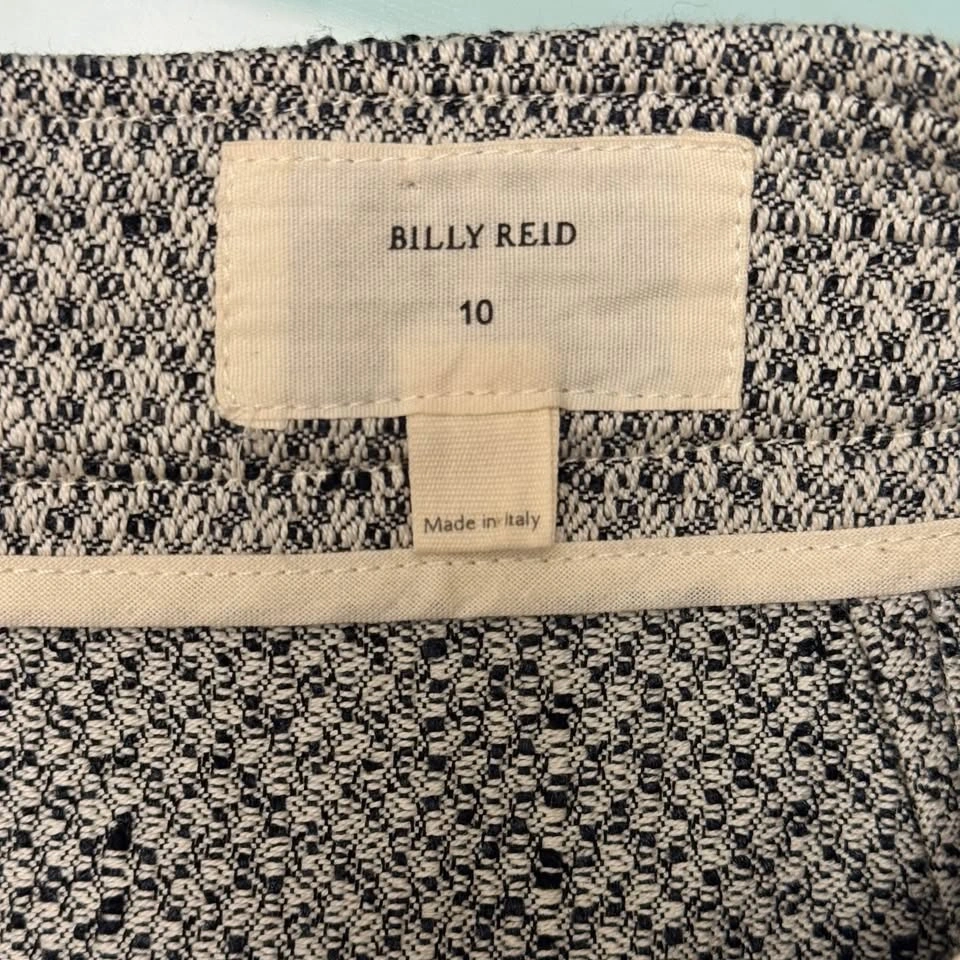 This stunning Billy Reid mini skirt is a masterclass in "Quiet Luxury." Made in Italy from a luxurious 60% Cotton and 40% Silk blend, it features a sophisticated textured weave that offers both structure and a soft, premium hand-feel. It has a neutral gray and charcoal micro-textured body contrasted with beautiful beige striped patch pockets. The skirt has a classic A-line mini cut that sits comfortably at the waist, with a discrete back zip closure and high-quality interior binding. Perfect for a professional look or weekend brunch. Excellent pre-loved condition. No visible flaws, pulls, or stains.