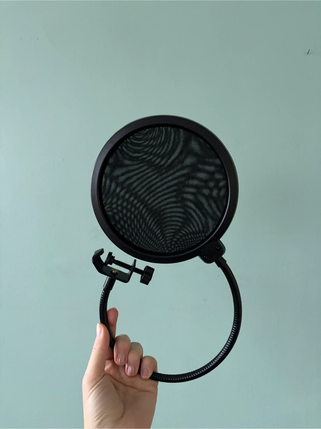 This Neewer pop filter is an effective studio tool for controlling excessive "s" and "b" consonants. It features a high quality acoustic filter and an adjustable clamp that fixes securely to any mic stand. The flexible goose neck allows for precise positioning.