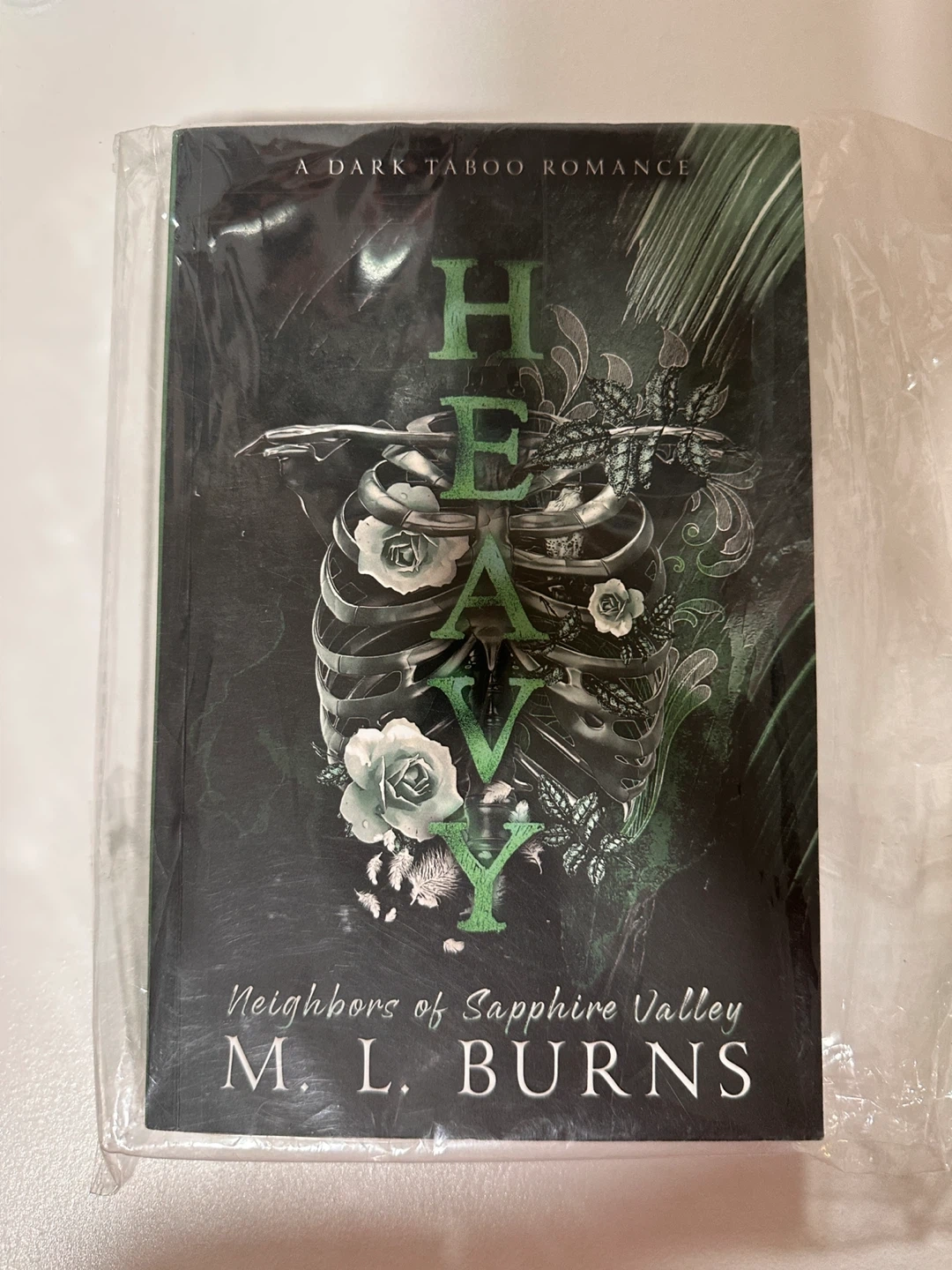 This is the novel 'Heavy' by M. L. Burns, part of the Neighbors of Sapphire Valley series. It's a dark taboo romance. This book is perfect for readers who enjoy intense and mature themes in their stories.