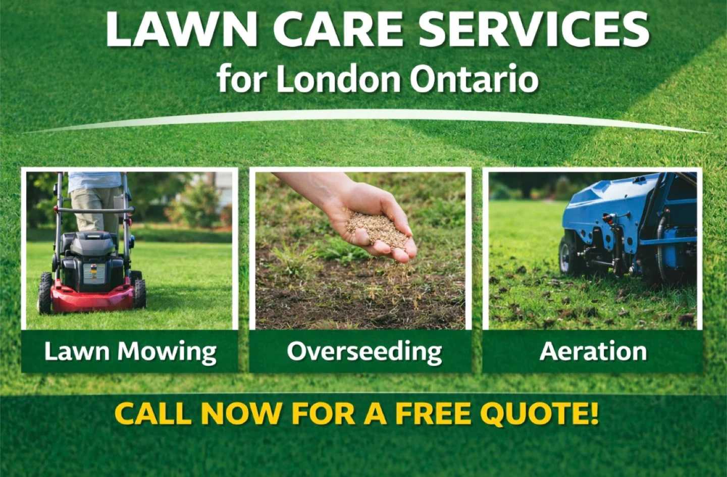 We offer lawn care services. Secure your spot for best rate for mowing, over seeding and Aeration.