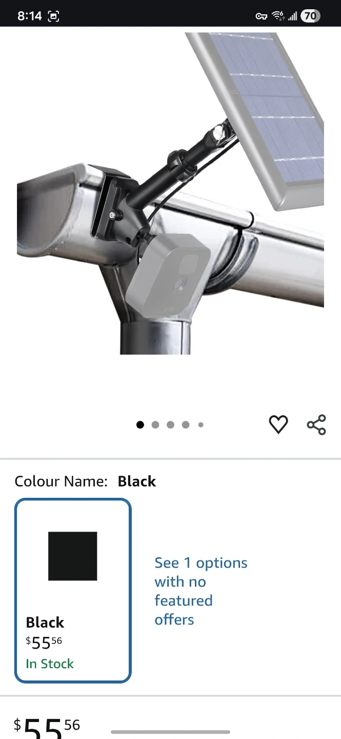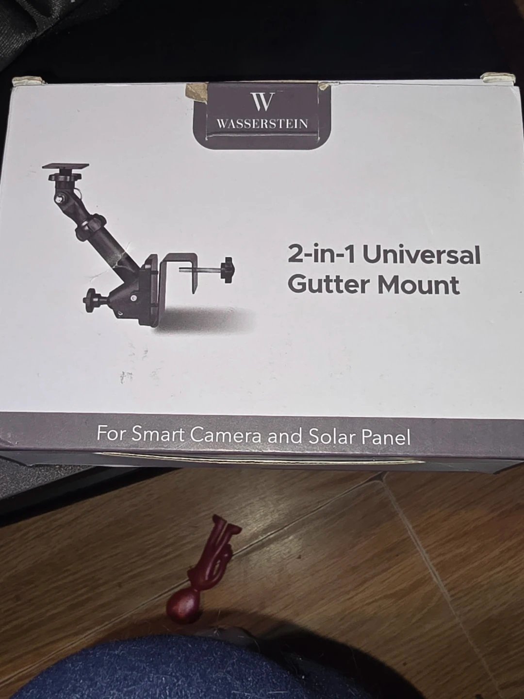 This is a Wasserstein 2-in-1 universal gutter mount in black. It's designed for smart cameras and solar panels. The mount is ideal for securing devices to gutters and roofs, offering flexible positioning for your camera and solar panel. It's made of durable material and provides a stable attachment point.
