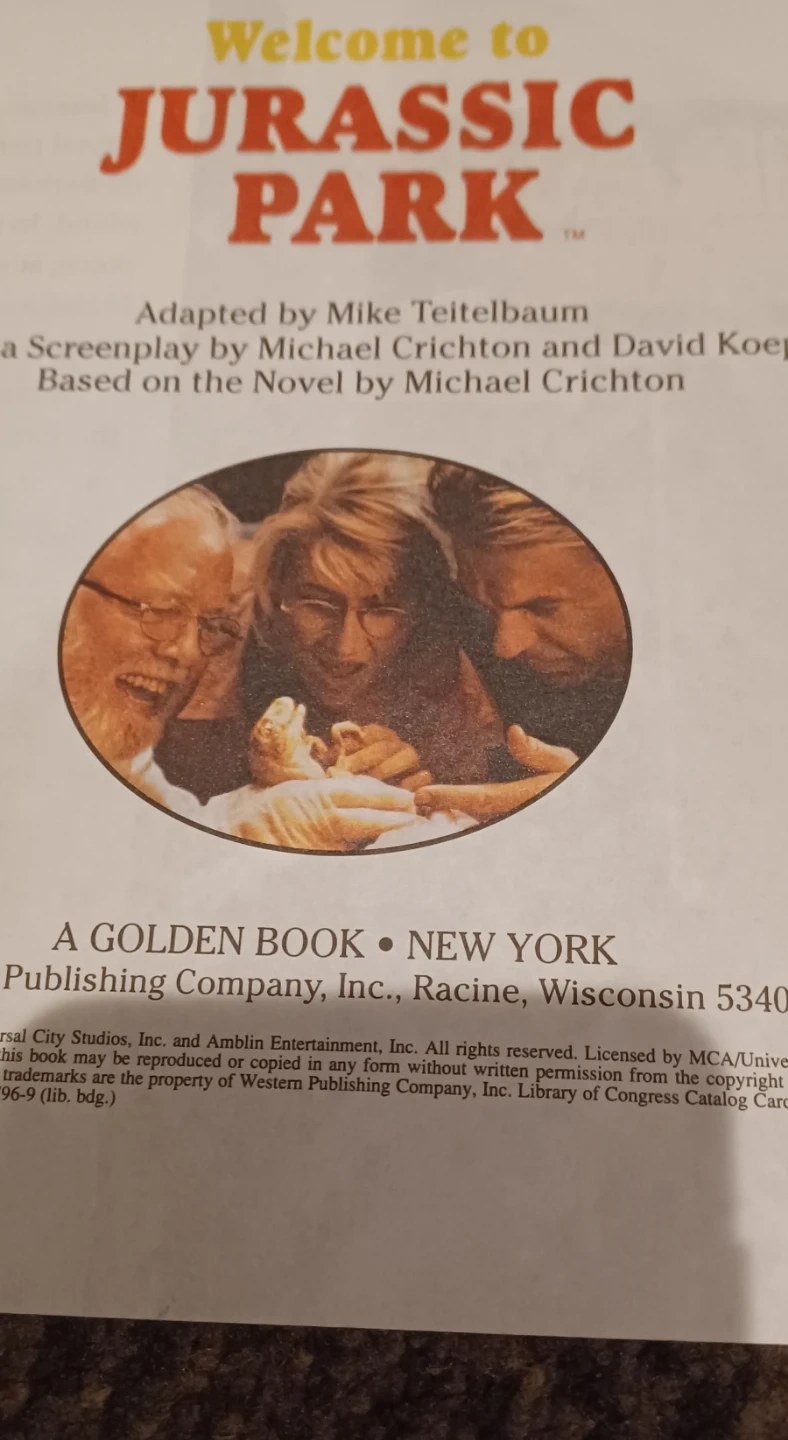 Dive into the prehistoric world with this vintage 'Welcome to Jurassic Park' book, adapted by Mike Teitelbaum and David Koep from the novel by Michael Crichton. Published by A Golden Book, New York, this paperback edition brings the adventure of Jurassic Park to life through vivid illustrations and engaging storytelling. While showing some signs of its age, this book remains a cherished collectible for fans of the iconic movie and novel. Condition as seen in photos. Perfect for Jurassic Park enthusiasts and collectors of vintage books!