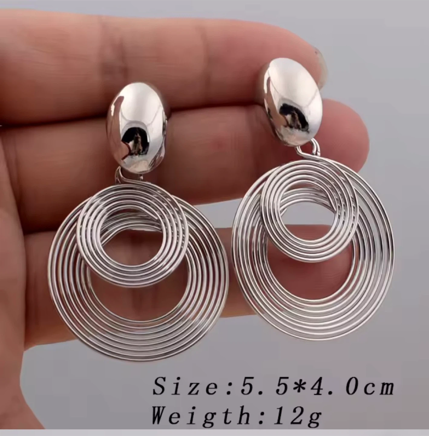 Add a touch of glamour with these statement earrings! They are available in either a silver or gold tone. The size is 5.5 x 4.0 cm, and they weigh 12g. Perfect for dressing up any outfit!