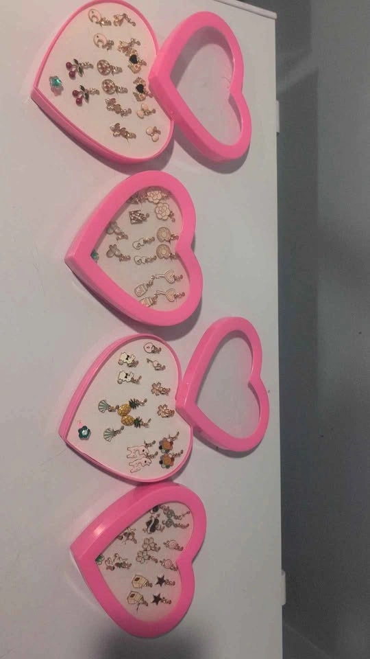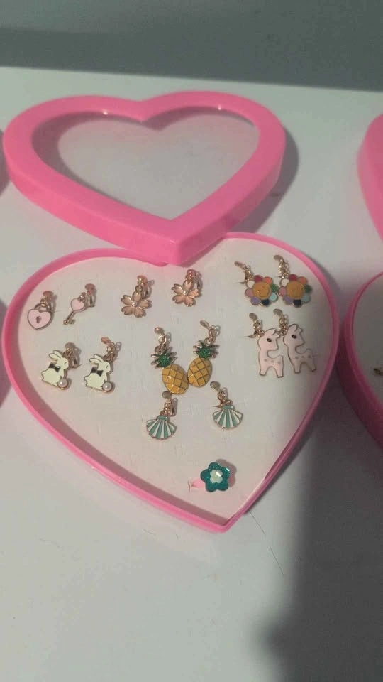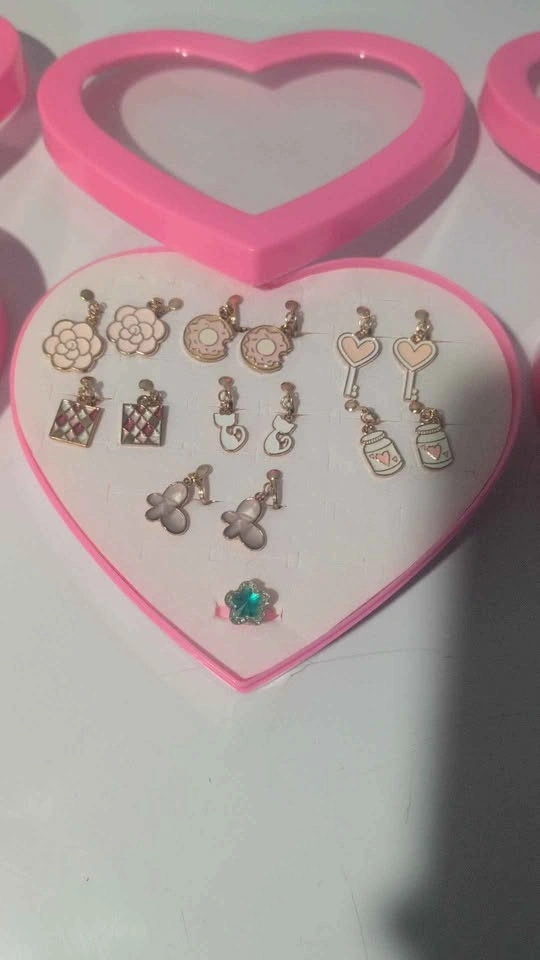 Each heart-shaped box includes 7 pairs of adorable earrings and a cute ring, perfect for girls, teens, or anyone who loves fun accessories.