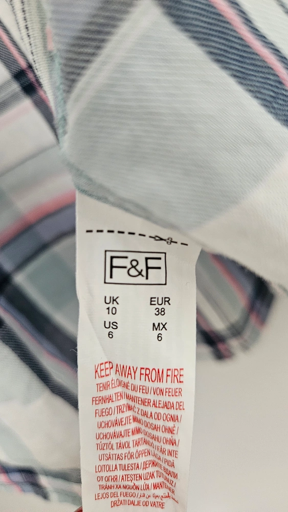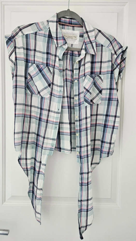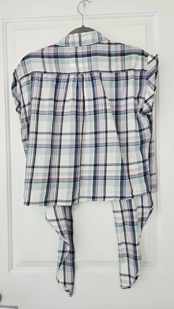 Cute plaid shirt from F&F's Casual Collection! Size is US 6- Medium (UK Size 10). It features a tie-front design and short sleeves, perfect for warmer weather. In great condition and ready for a new home!
