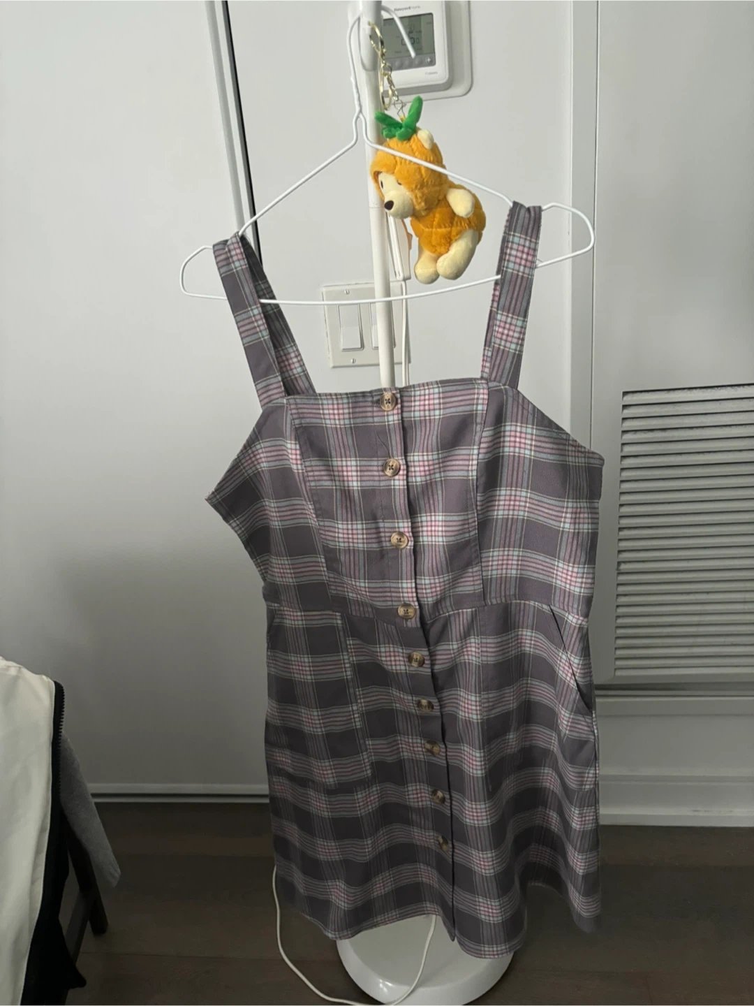 Buy & SellButton-Front DressButton-Front Dress$10Grey dress with a pink and white plaid pattern. It features a button-front closure and has straps.SizeSWHERE TO MEETCheck LocationView MapSELLERkarenWellesley Station100 reviews0 chats·1 favorites·25 viewsSEND CHAT TO SELLERHi karen! I’m interested in your listing.Hi karen! I’m interested in your listing.Get the Karrot app to chatSign In to chat