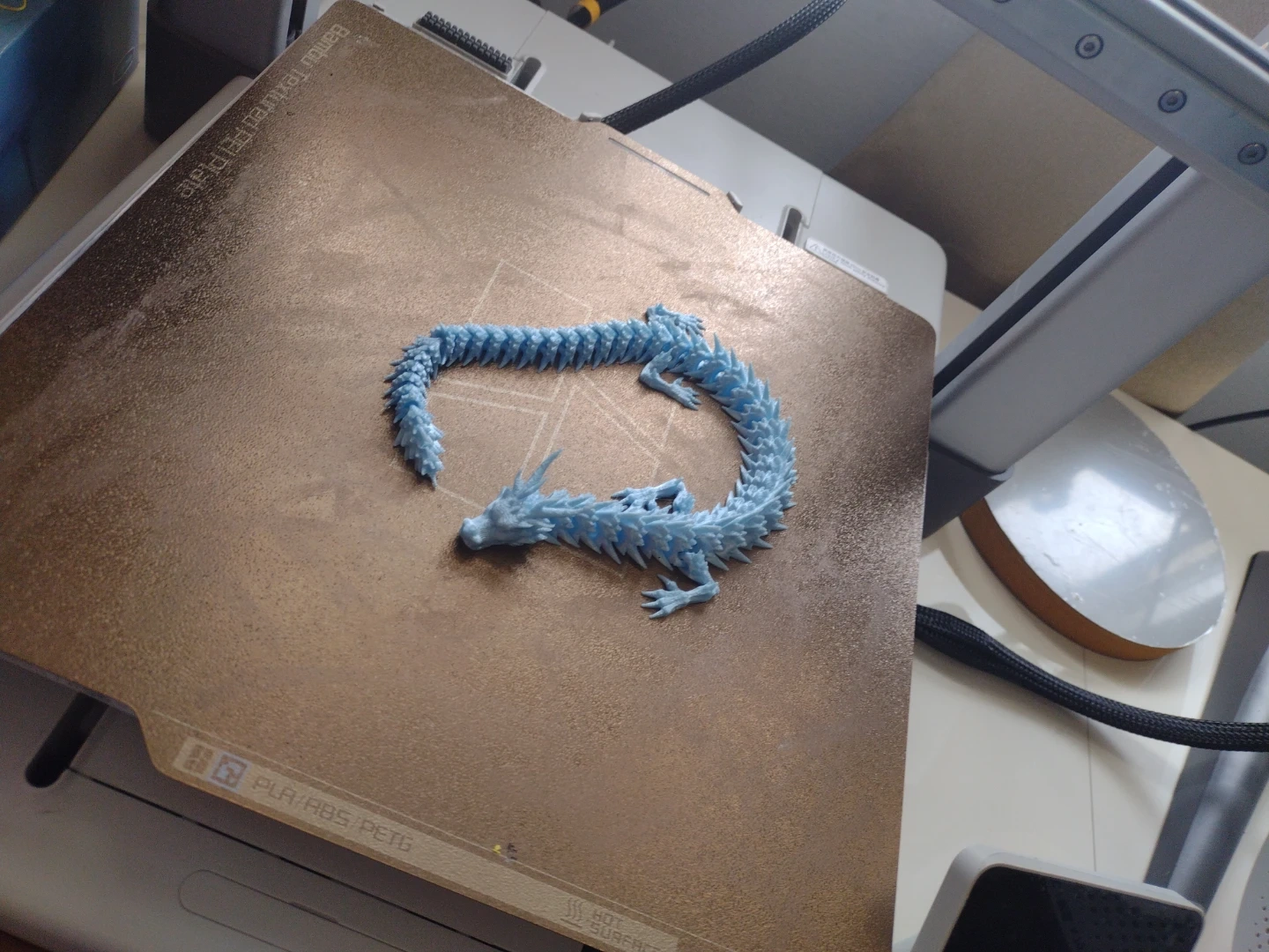 This is a cool articulated dragon figurine, perfect for display or play! It's light blue and has a flexible body. It's about 10 inches long when fully stretched out.