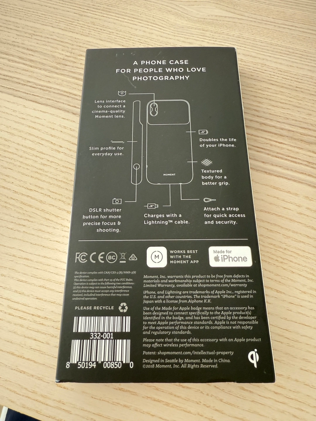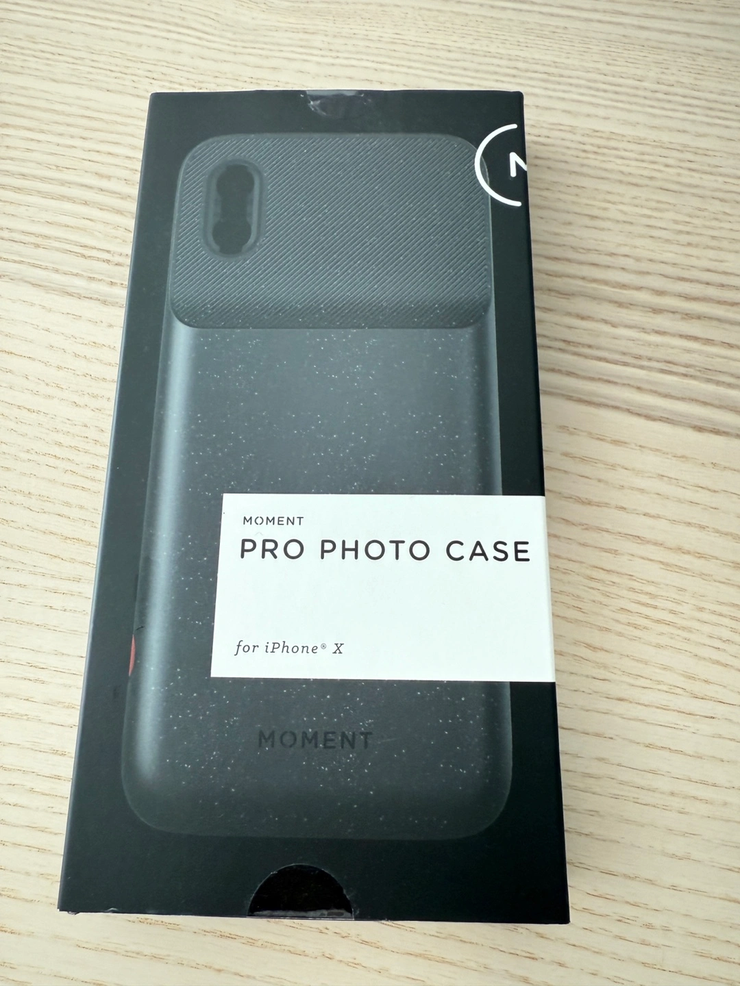 Selling a Moment Pro Photo Case for iPhone X. It's designed for people who love photography, offering a lens interface to connect a cinema-quality Moment lens. The case has a slim profile for everyday use and a textured body for a better grip. It also features a DSLR shutter button for precise focus and shooting, and it charges with a Lightning cable. Works best with the Moment app!