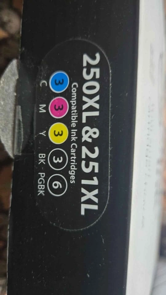 Original ink cartridges for your printer. Includes one 250XL black cartridge and one 251XL color cartridge. Feel free to message if you have any questions!