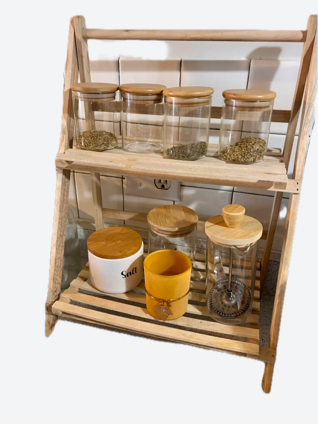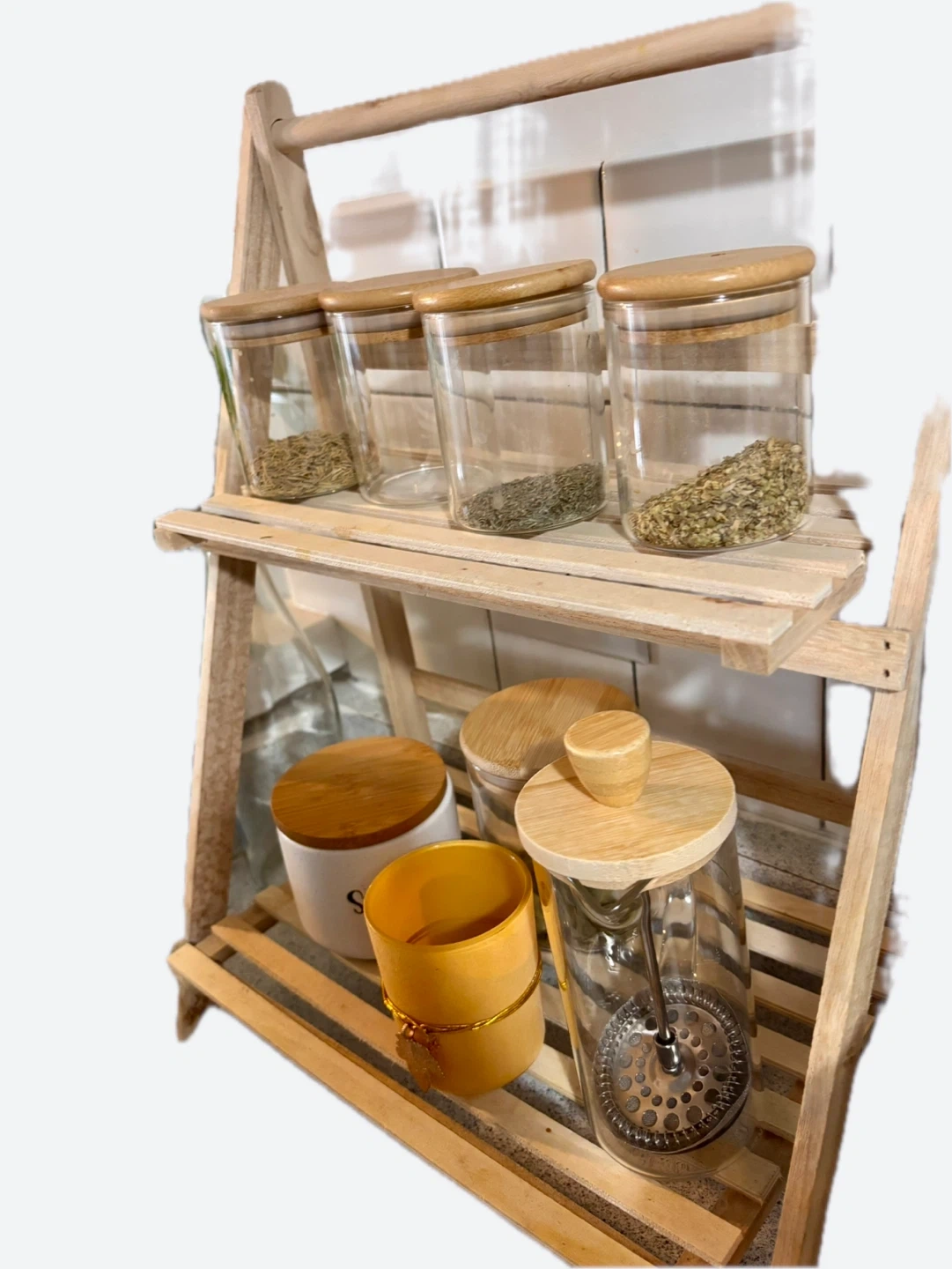 β¨ Wooden Kitchen Organizer Set + Jars + French Press β Perfect for coffee/tea lovers and kitchen decor