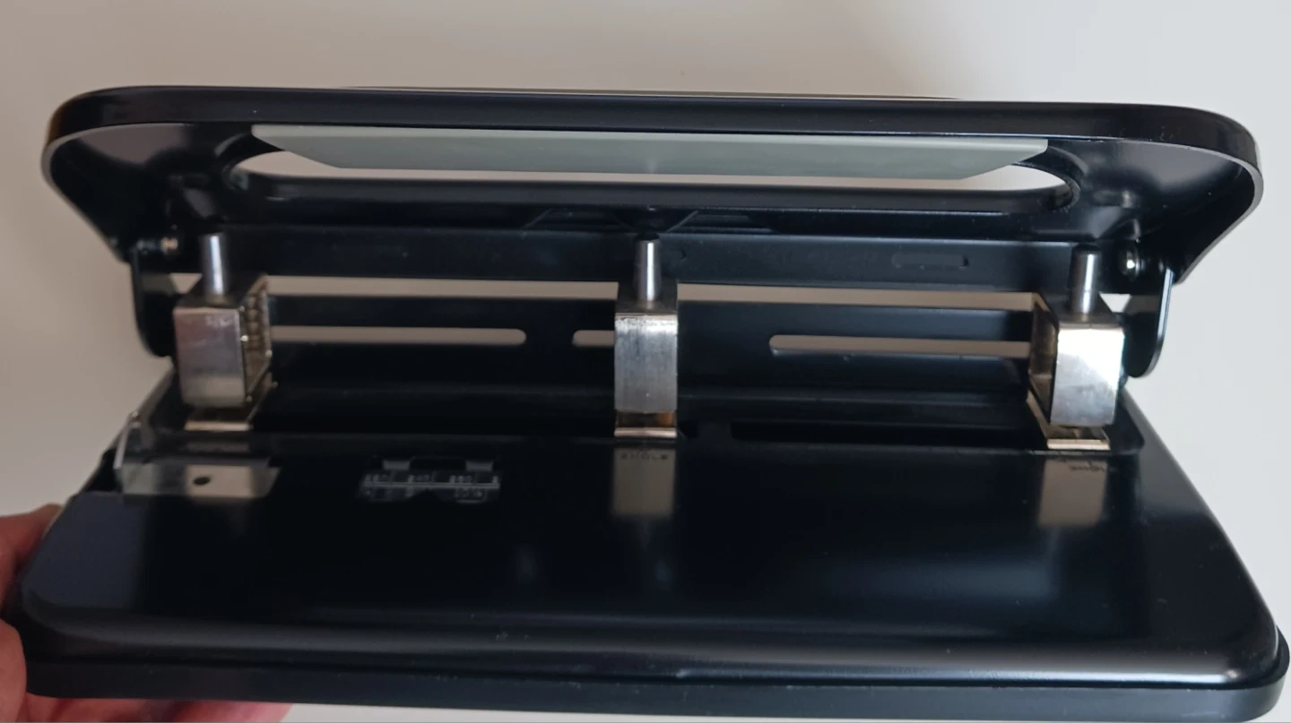 Heavy Duty 3 Hole Punch - Adjustable 2 or 3 Hole Puncher for Office & School, 40-Sheet Capacity, 50% Less Effort, Black Metal