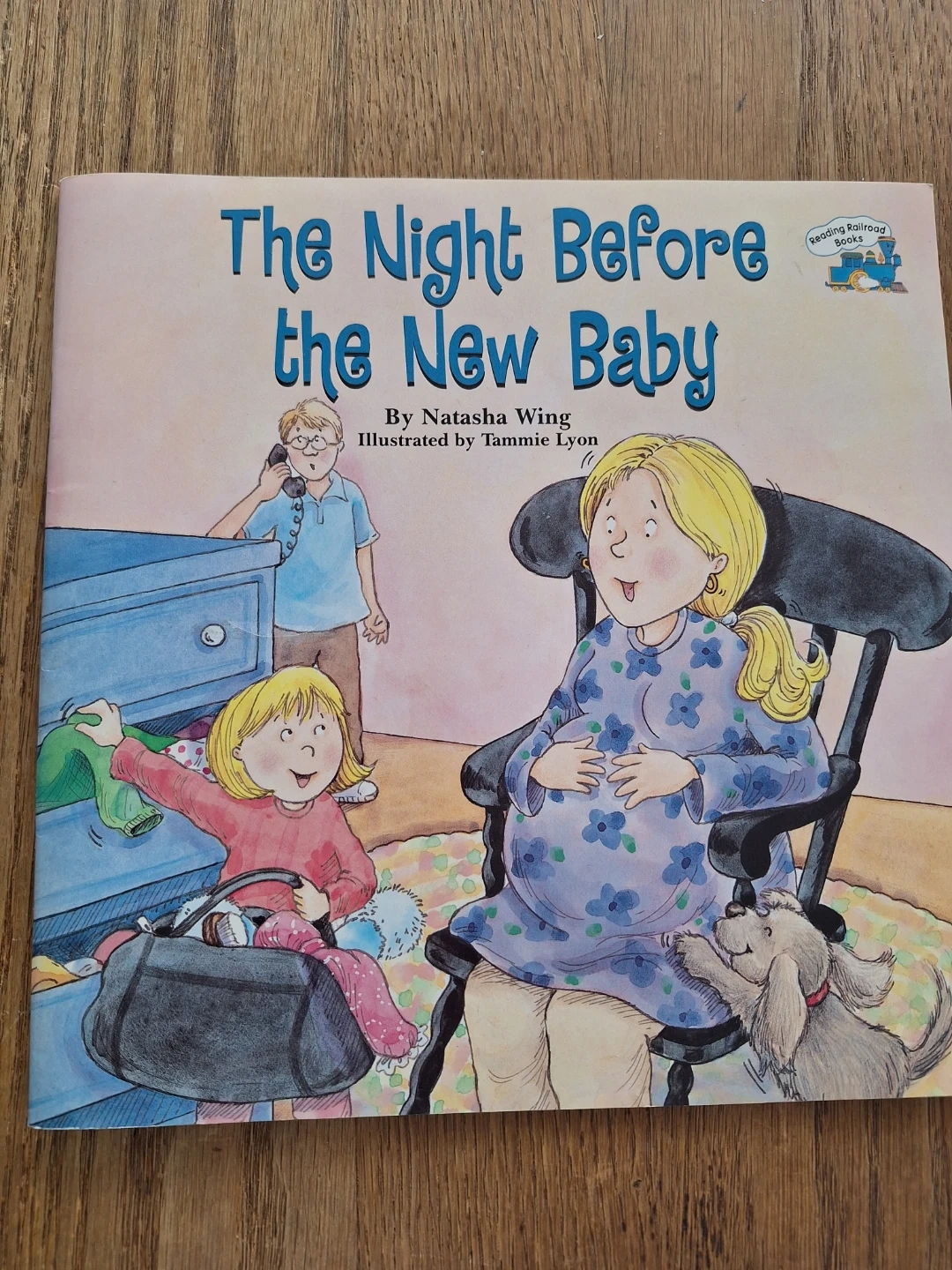 It's a children's book titled 'The Night Before the New Baby' by Natasha Wing, illustrated by Tammie Lyon. This book tells the story of a family preparing for a new sibling. It's great for kids anticipating a new brother or sister!