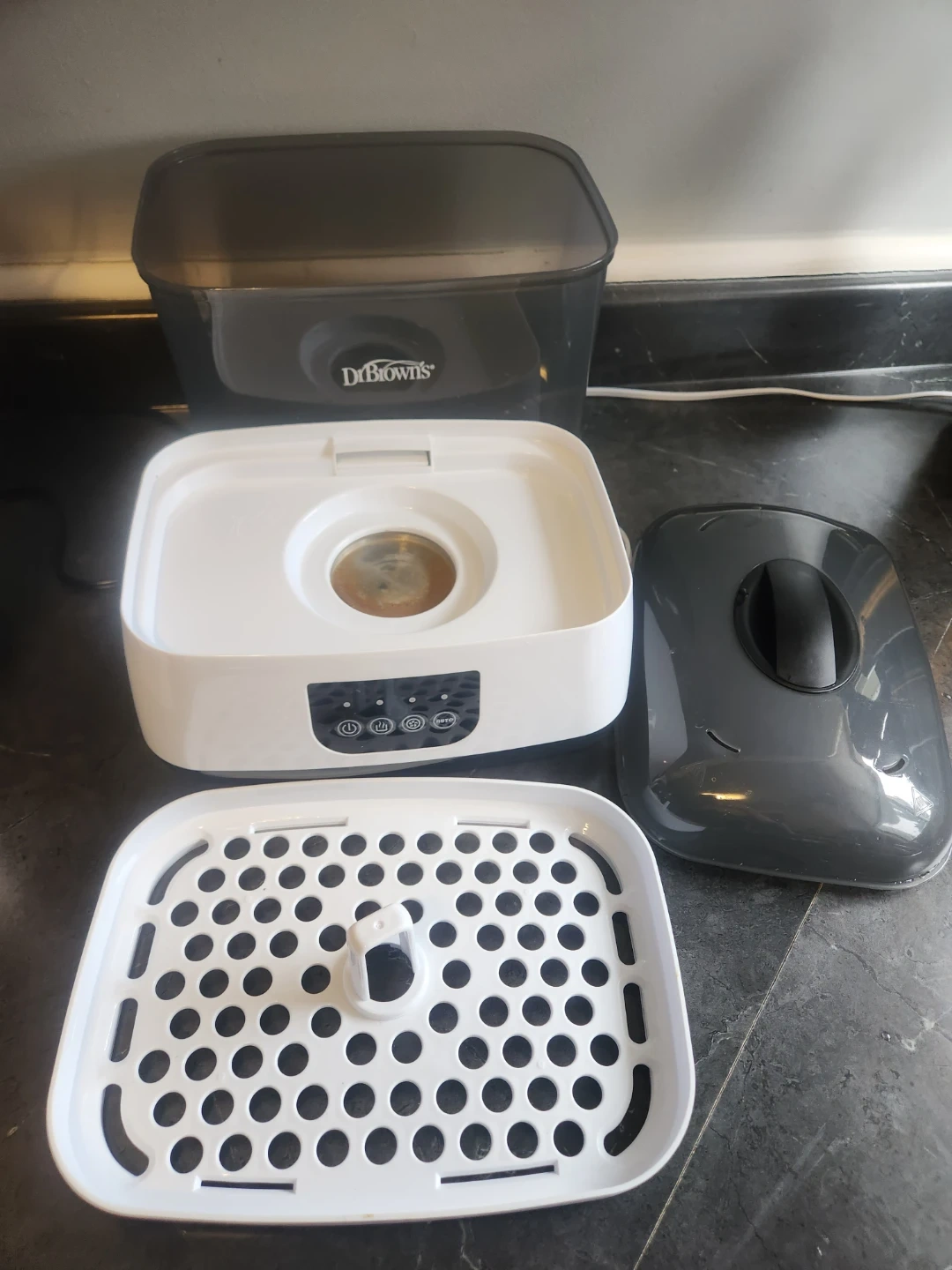Dr. Brown's sterilizer with multiple components included. This unit helps sanitize baby bottles and accessories. Upper tray is perfect for small parts. Very user friendly.