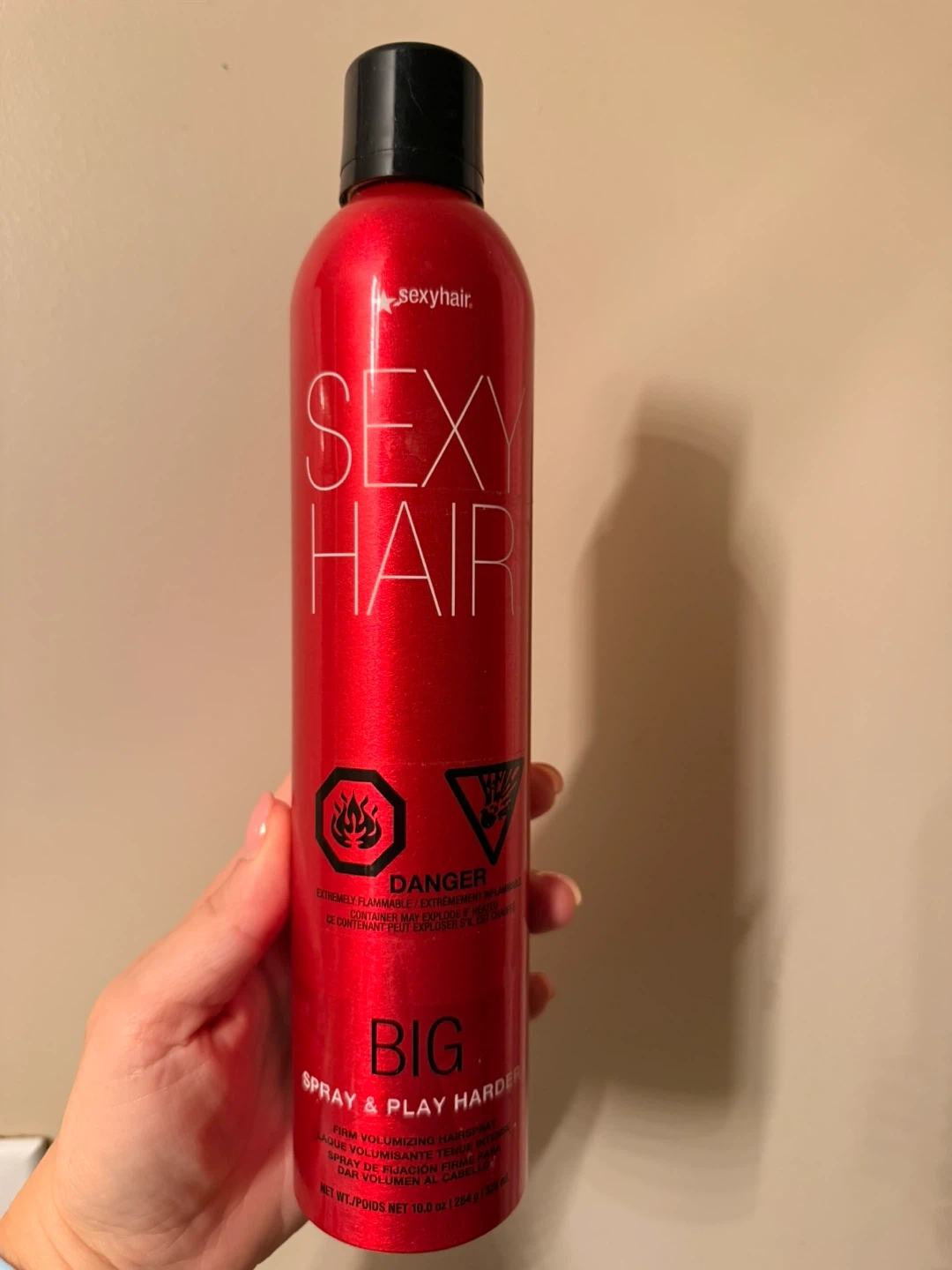 Sexy Hair Big Spray & Play Harder firm volumizing hairspray. This is a 10.0 oz can. It's designed for firm hold and volume! Retails for $25 plus tax
