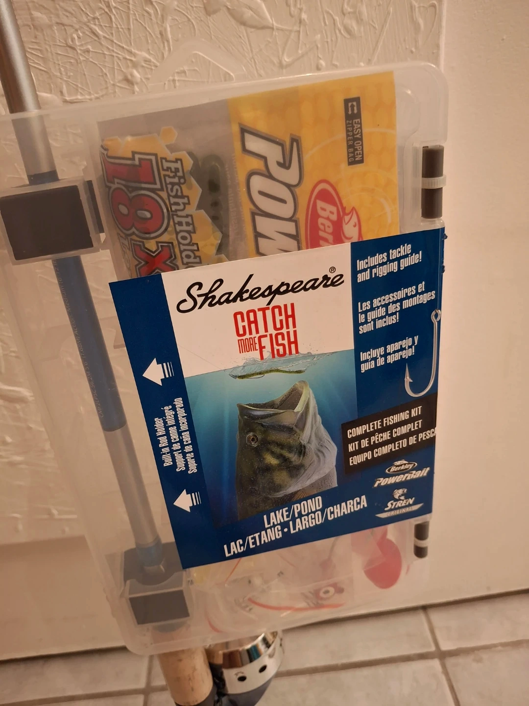 It includes a rod, reel, tackle, lure, and rigging guide. It's a great starter kit for anyone looking to learn how to fish!