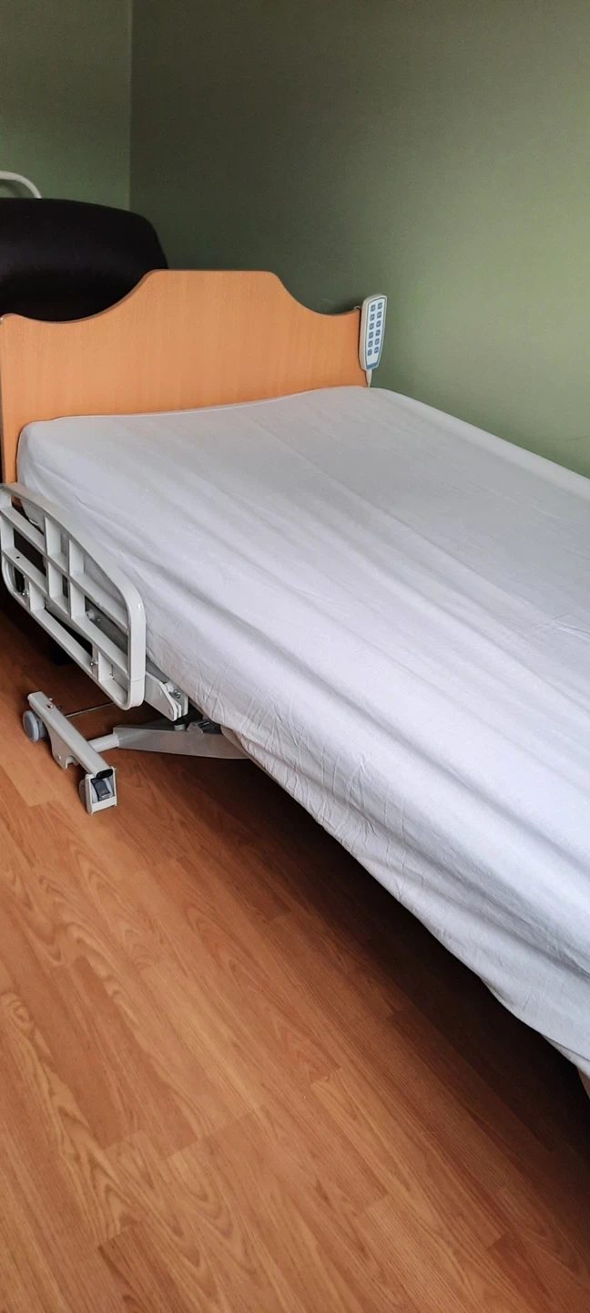 Adjustable hospital bed with remote control for multiple. This bed is great for individuals needing extra support and adjustability. Comes with rails and Roho bed cushion with brand new cover. Bed is located in Brampton.
