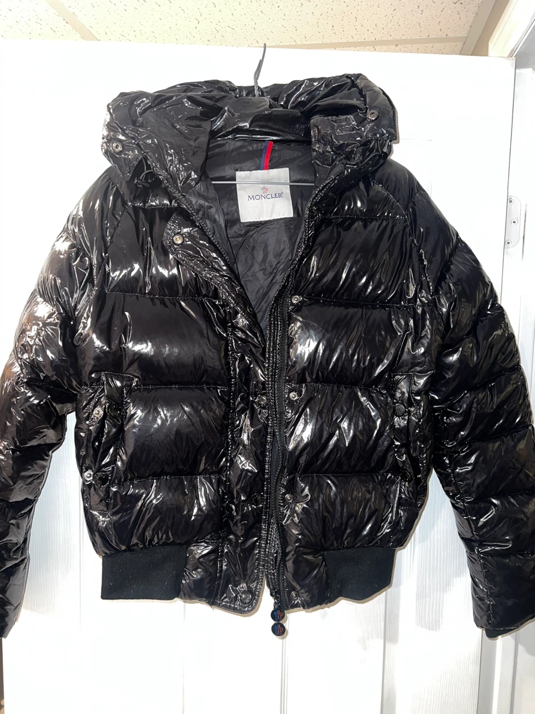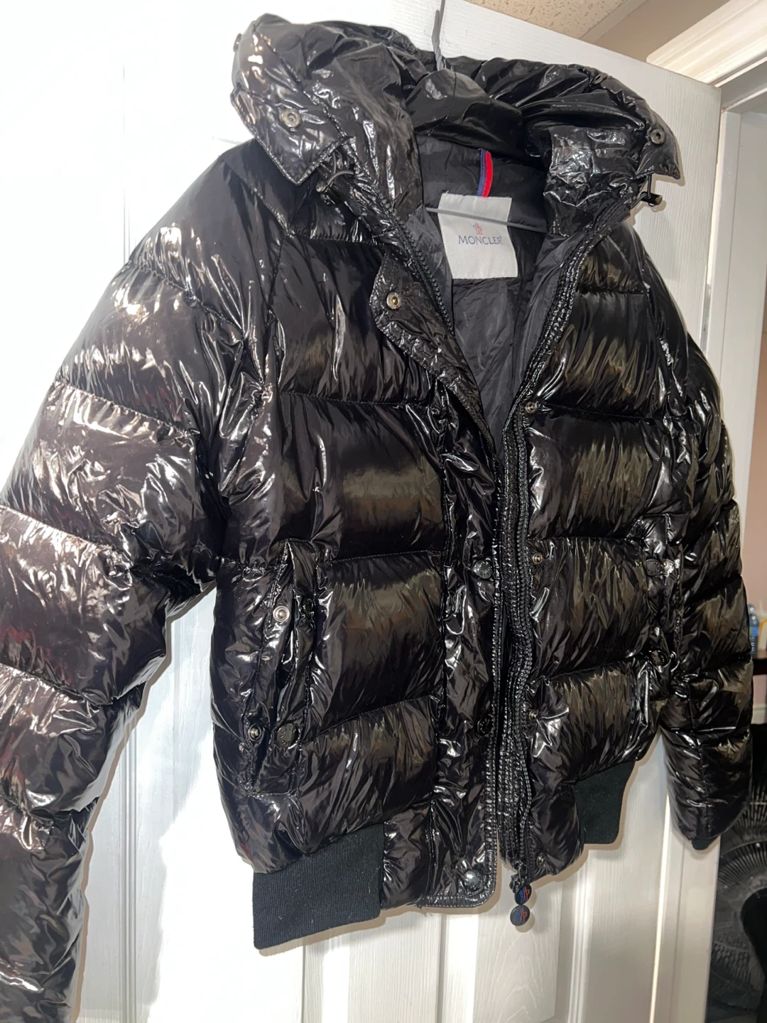 Selling a stylish Moncler black puffer jacket, not 100% sure it’s authentic but can pass. It's in great condition and ready to keep you warm this winter! The jacket features a glossy finish and iconic Moncler logo details on the zipper pulls and tag. Perfect for staying fashionable in the cold weather.