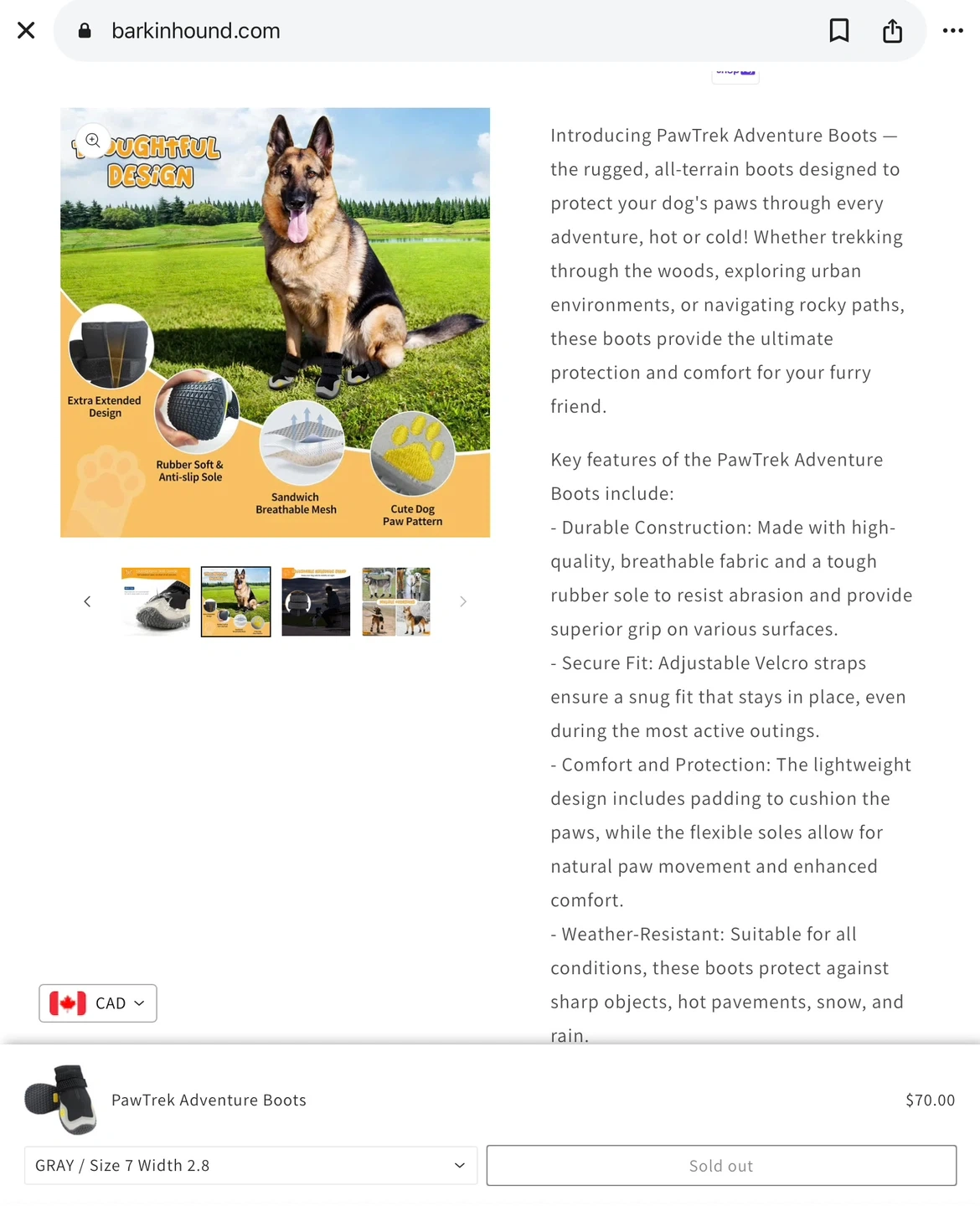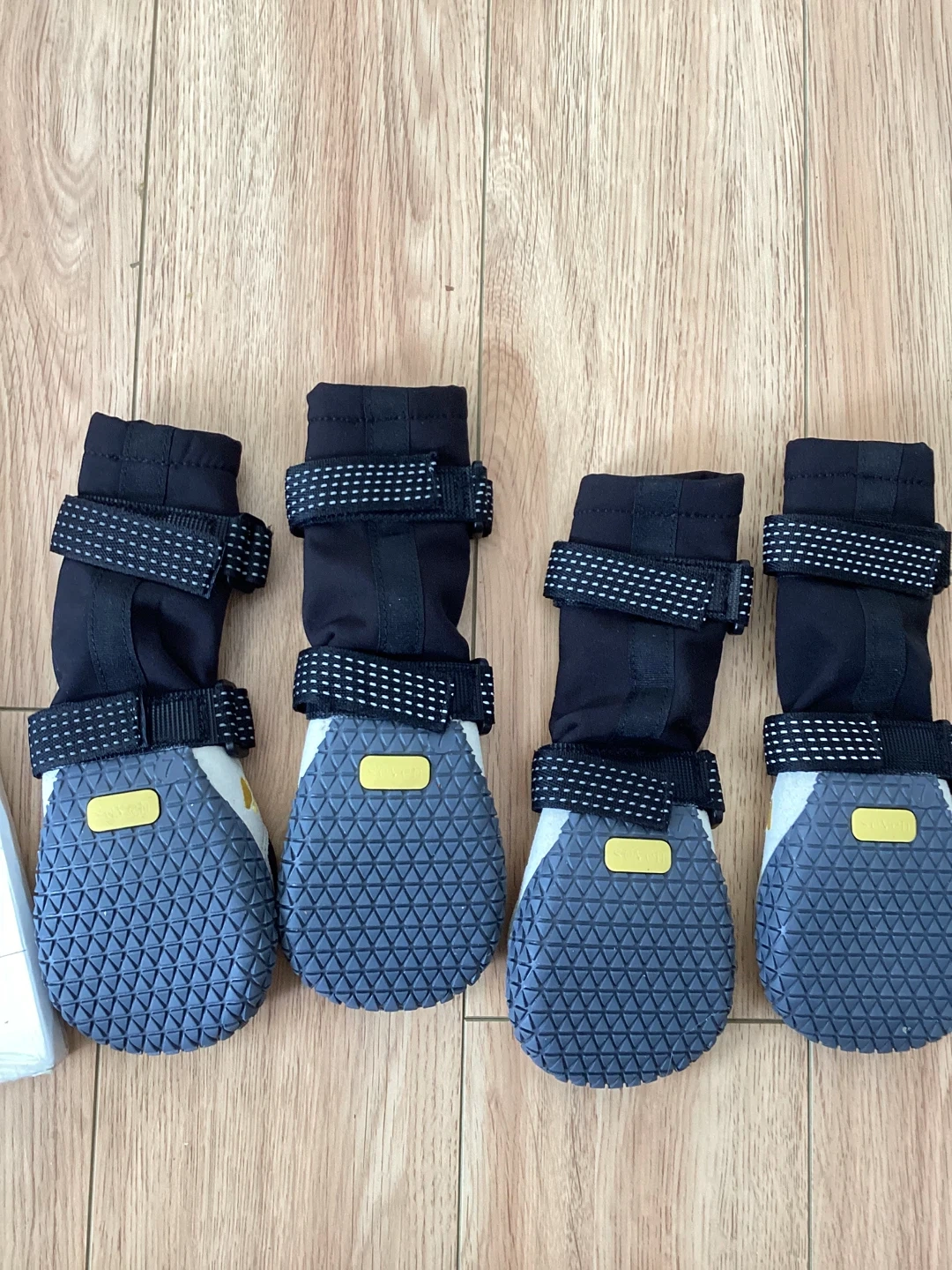New unused PawTrek Adventure Boots designed to protect your dog's paws. They're made with durable, breathable fabric and a tough rubber sole to resist abrasion. Adjustable Velcro straps ensure a snug fit for comfort and protection. These boots are suitable for all conditions, from hot pavement to snow and rain!
