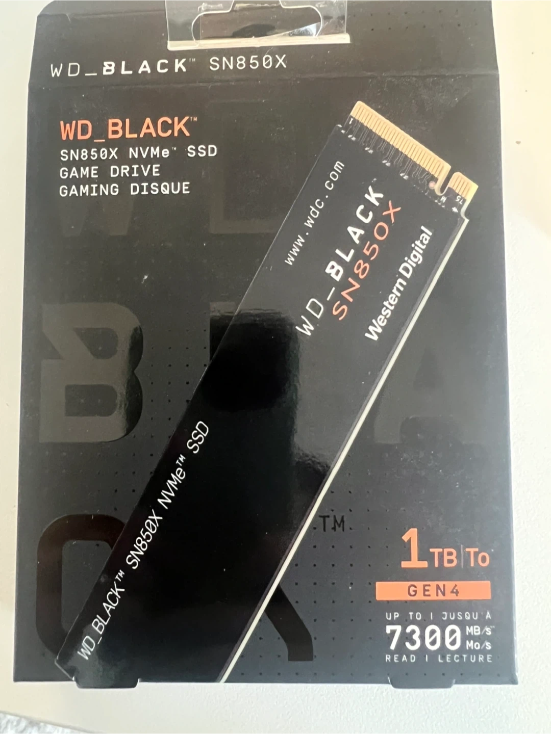 This is a WD_BLACK SN850X NVMe SSD with 1TB capacity. It's a gaming drive designed for high performance. It supports Gen 4 speeds.