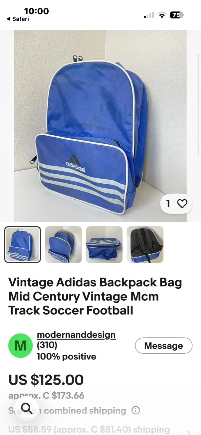 Similar vintage Adidas backpack are in the $80 to $100 range.