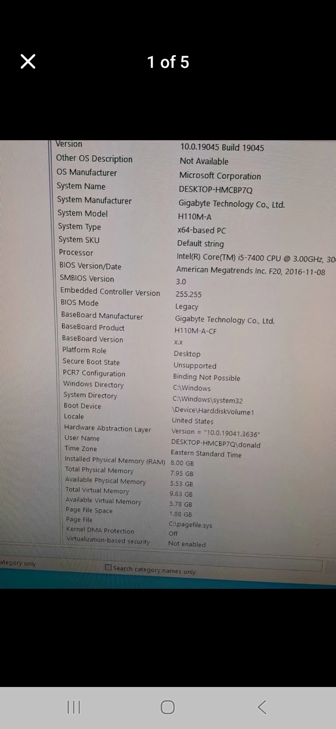 This is a Gigabyte H110M-A desktop computer. It runs on an Intel Core i5-7400 CPU with 14.00 GB of RAM. It comes with 500 SSD 1 TBD HARD DRIVE Anti-virus windows 10 WiFi adapter mouse keyboard