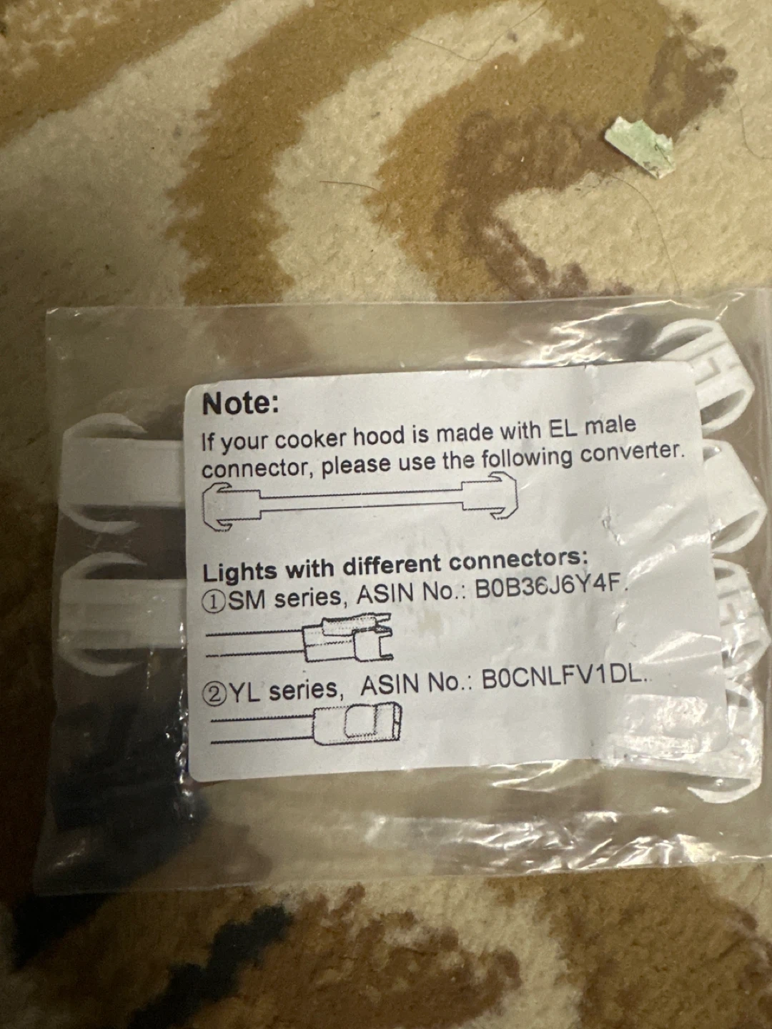 These are replacement connectors for cooker hood lights. They come in a pack of four, with two types included for different SM and YL series lights. This set is for lights with different connectors than the EL male connector.