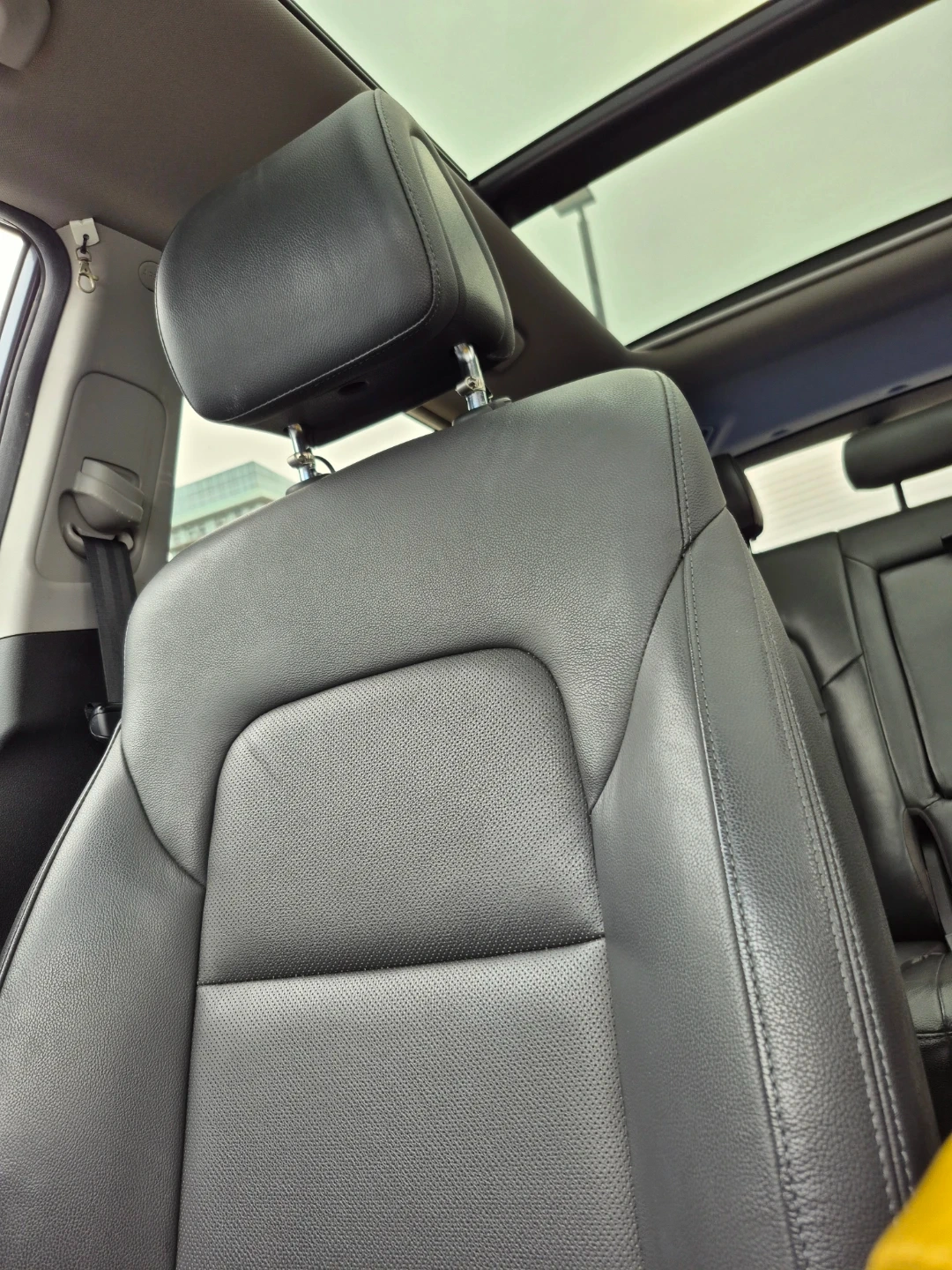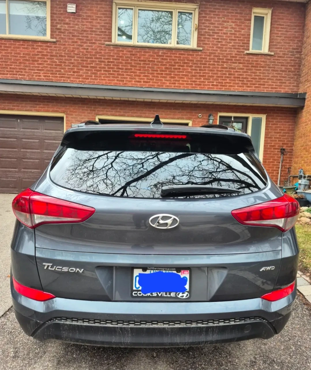 Grey 2018 Hyundai Tucson AWD. It has a panoramic sunroof and leather interior. This vehicle is an SUV.