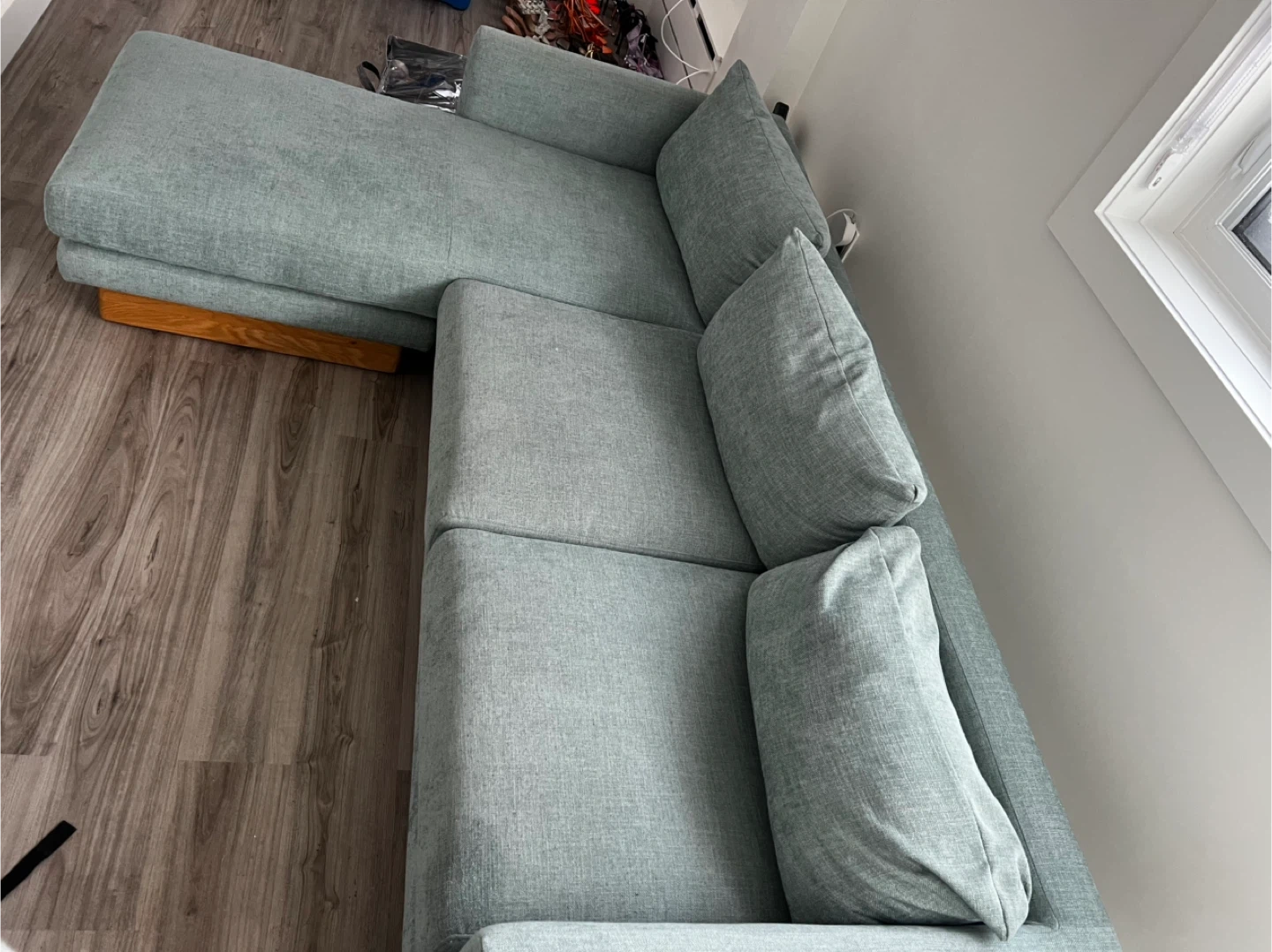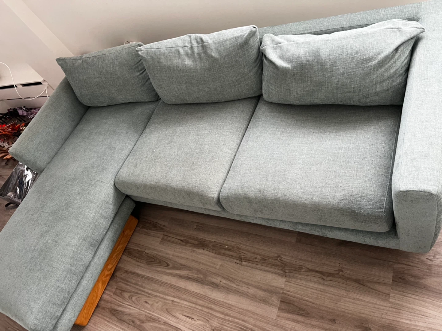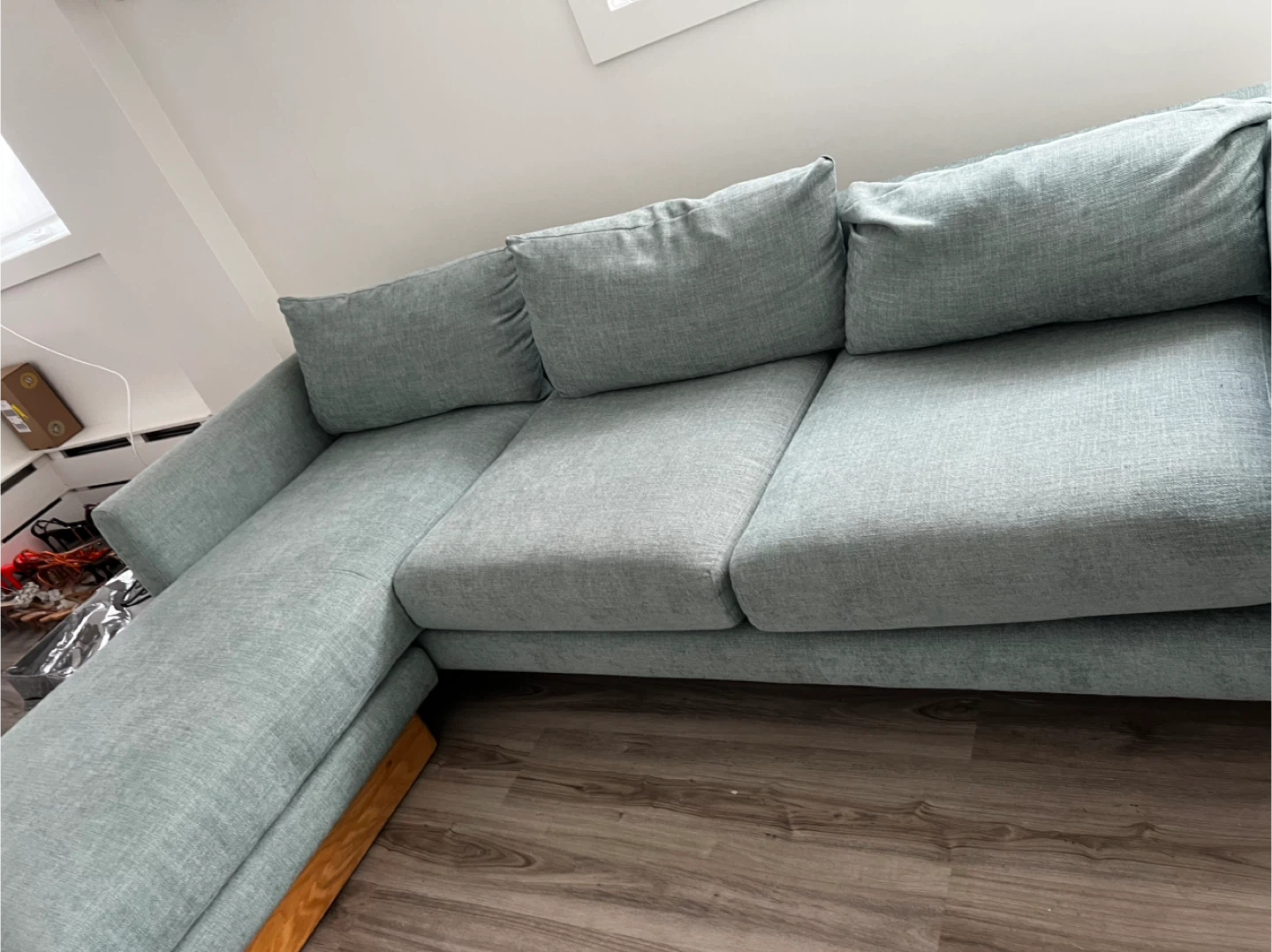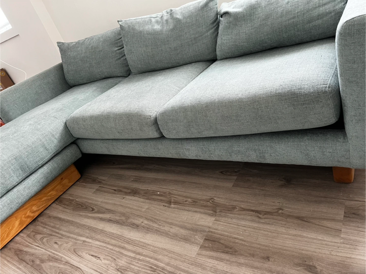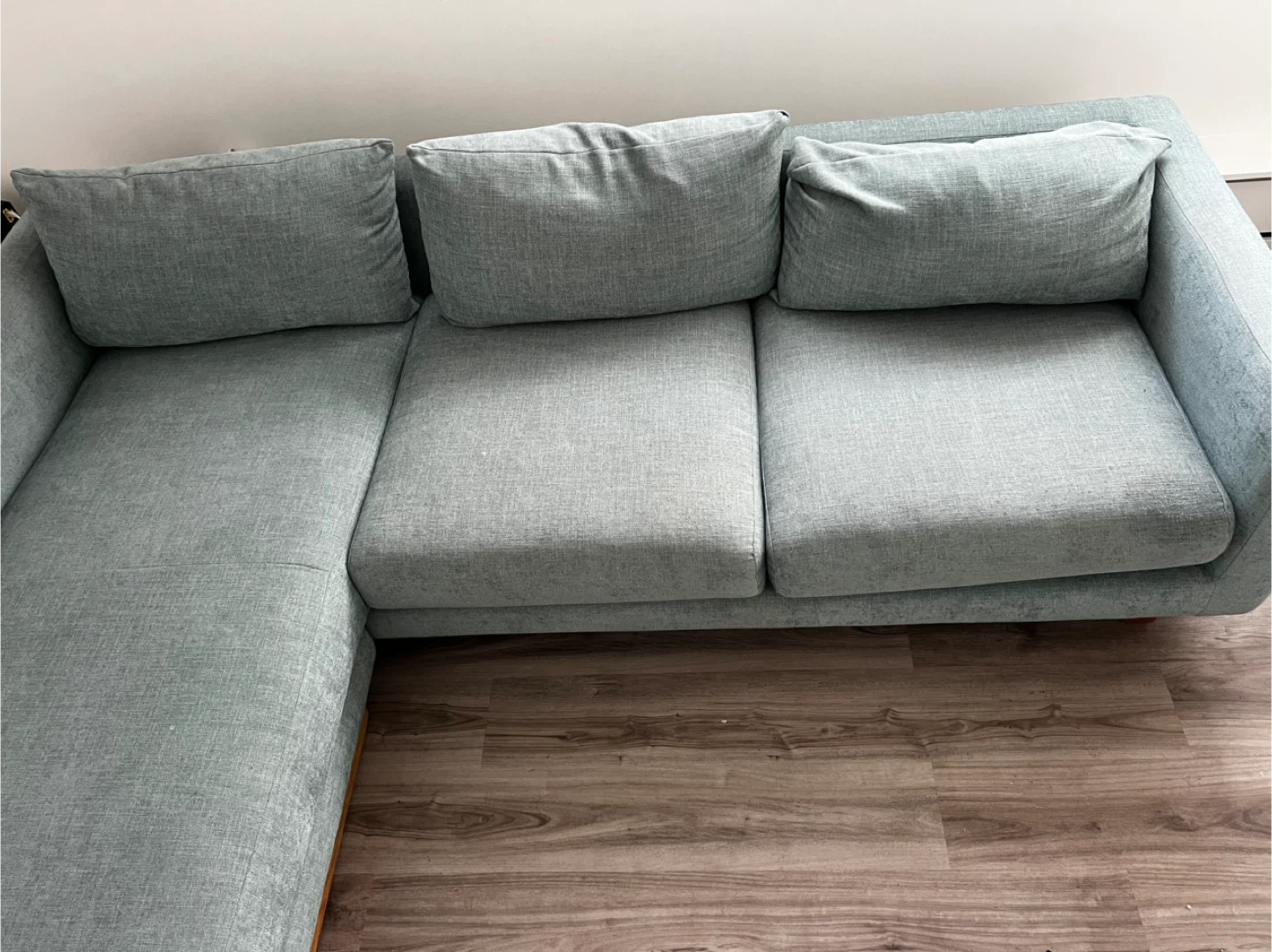 Article Burrard 112 sectional sofa, a high-quality modern piece known for its comfort and durability. The fabric has been thoroughly cleaned and is in excellent condition, with no stains. Cushions are supportive, hold their shape well, and the frame is solid.