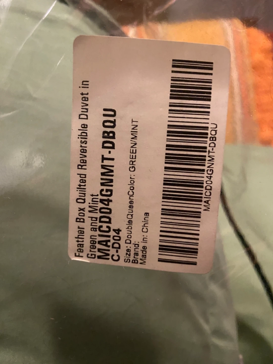 Cozy All-Season Feather Comforter in Green and Mint.