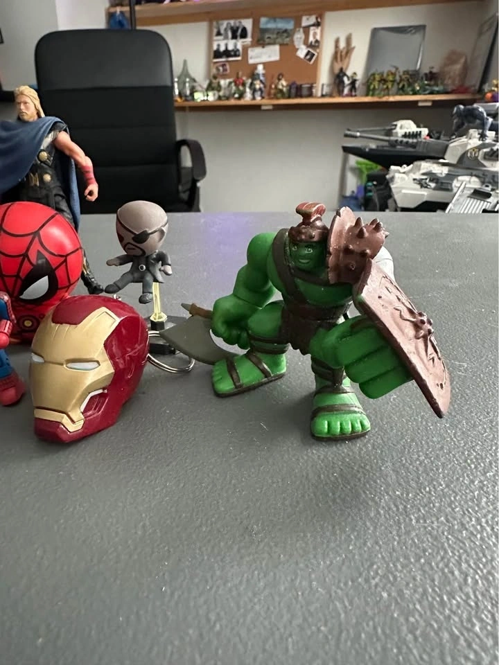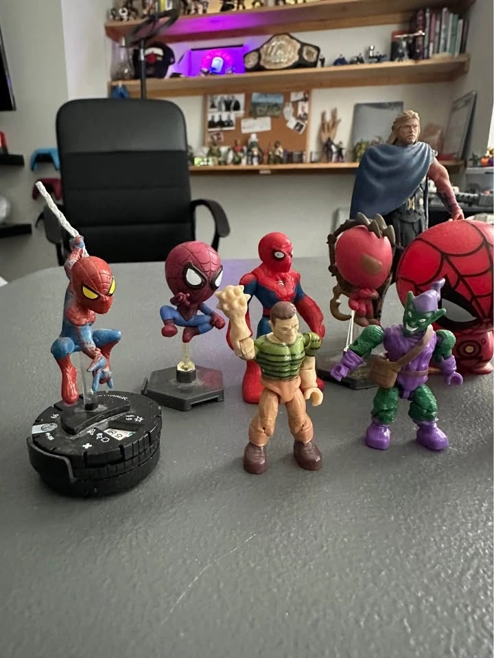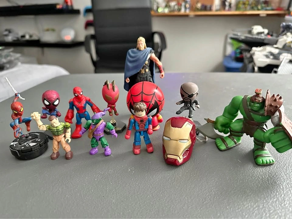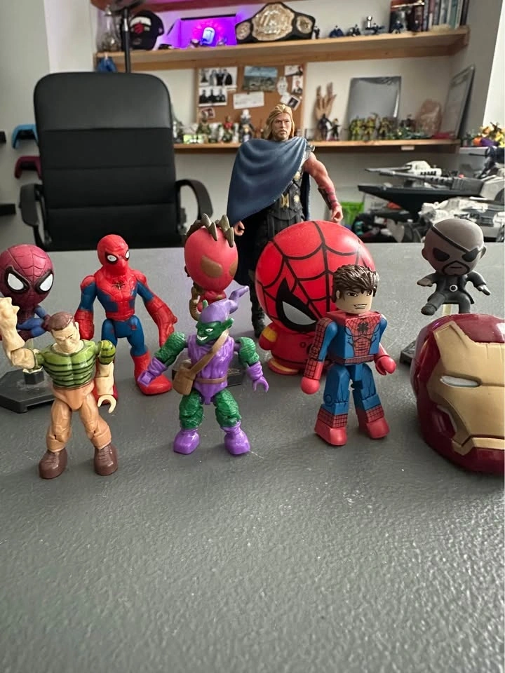 Lot of mini figures, around 2 inches tall. Thor is the tallest at about 3.5 inches. Includes Spiderman, Nick Fury, Thor, Hulk, Sandman, Hobgoblin, and an Iron Man helmet keychain. $5 for all. Pickup in Brampton.