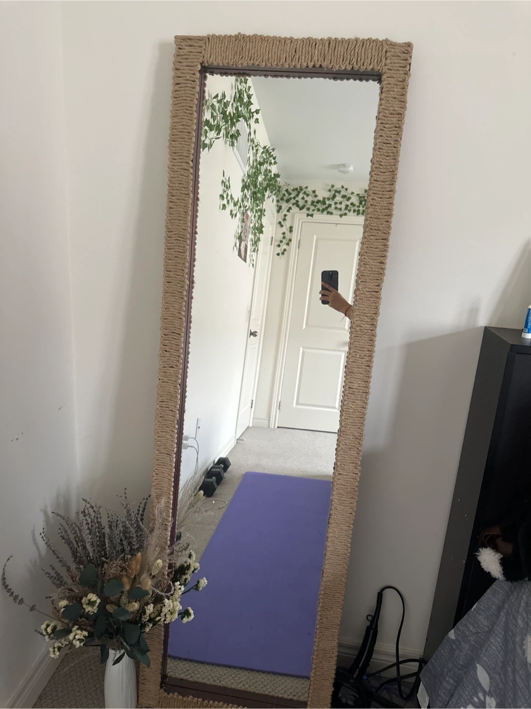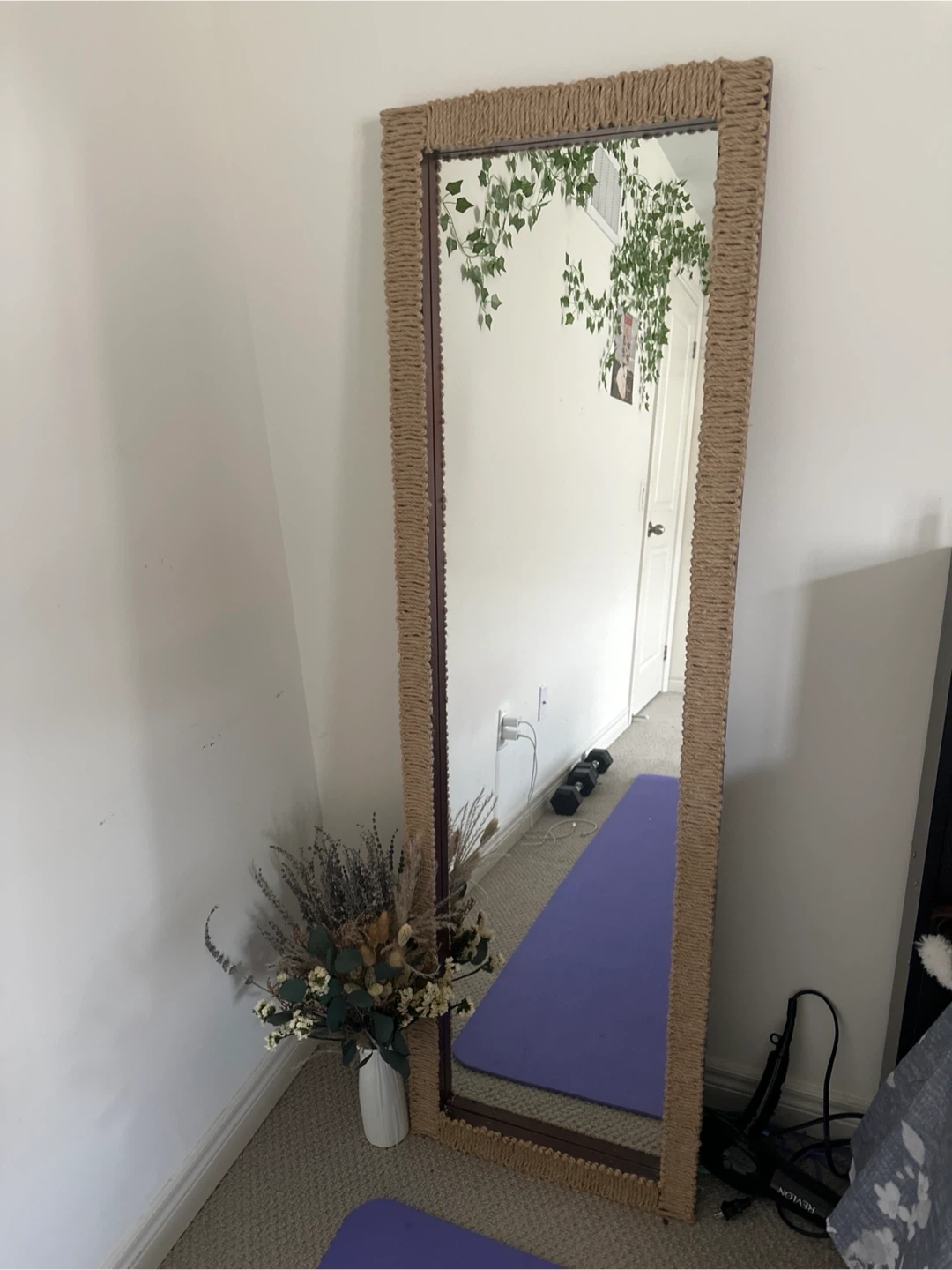 Selling a full-length mirror with a rattan trim! It's in great condition and would look lovely in any room. The mirror is perfect for checking out your outfit or just adding some style to your space