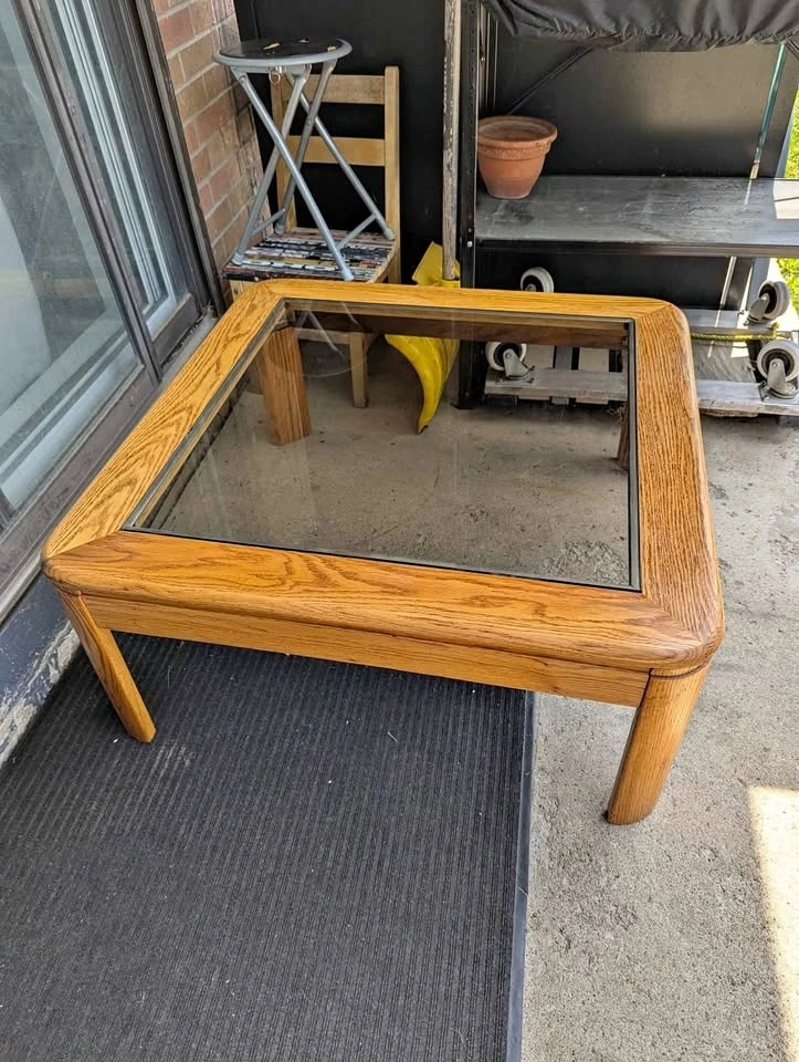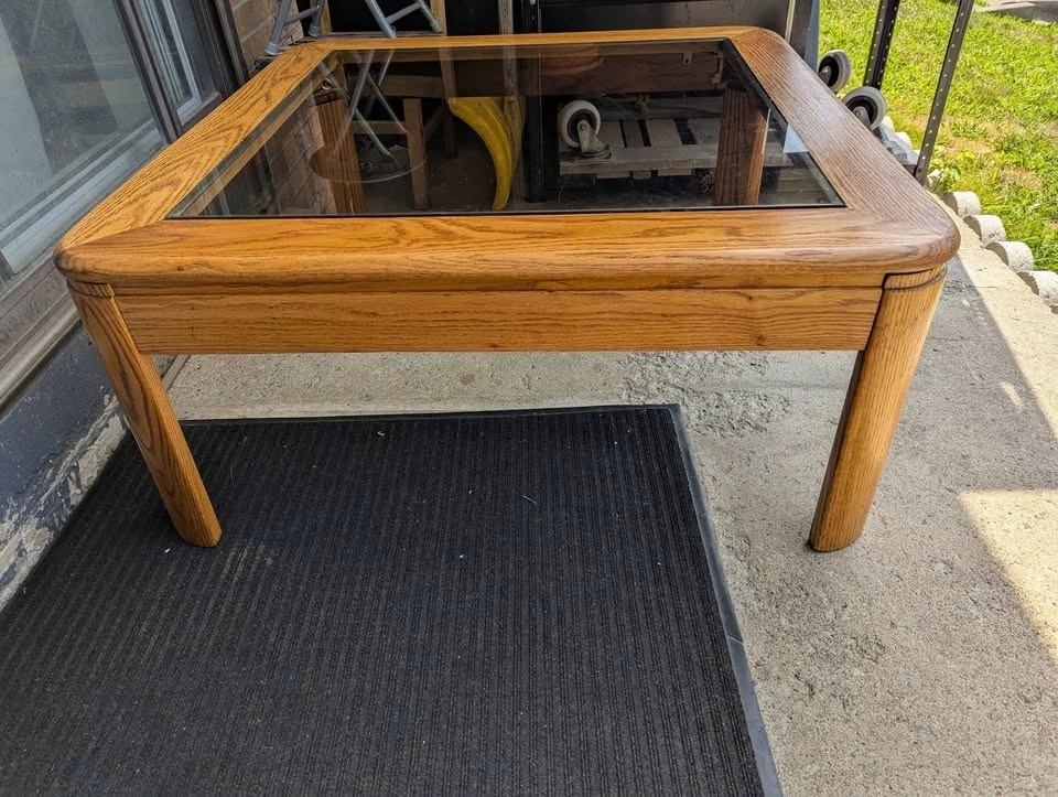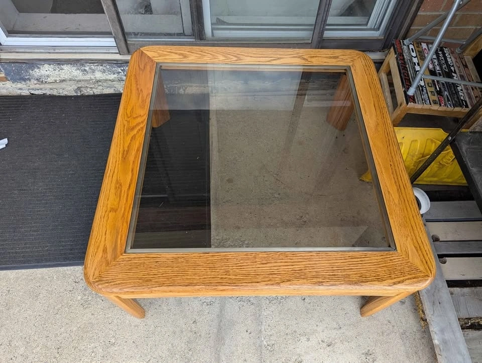 Refurbished Wood Coffee Table w/ Glass Top - 36"x36"