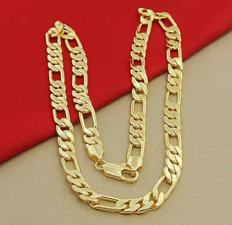 Elevate your style with this bold and elegant Figaro gold chain necklace. Designed with a classic alternating link pattern, this chain delivers a timeless look that works perfectly for everyday wear or special occasions.