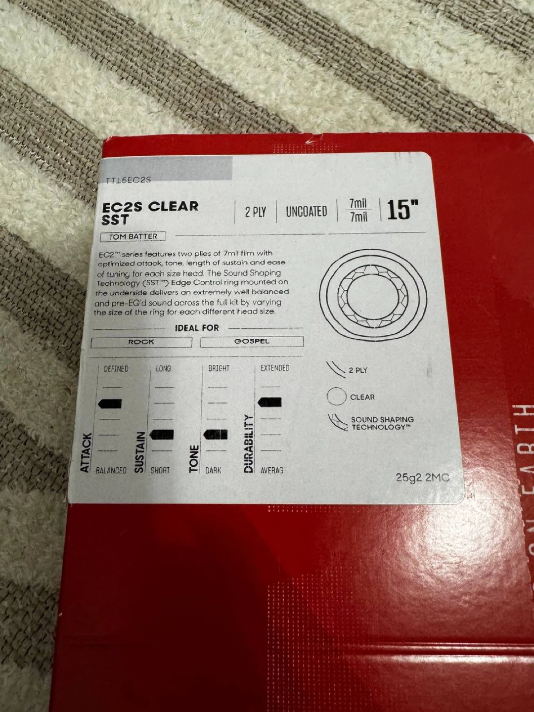 🥁 Evans EC2S Clear SST 15” Drum Head – NEW – $40 ‼️FINAL SALE‼️