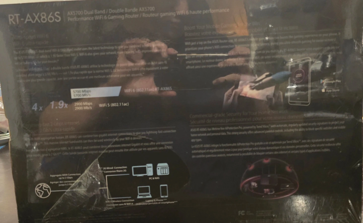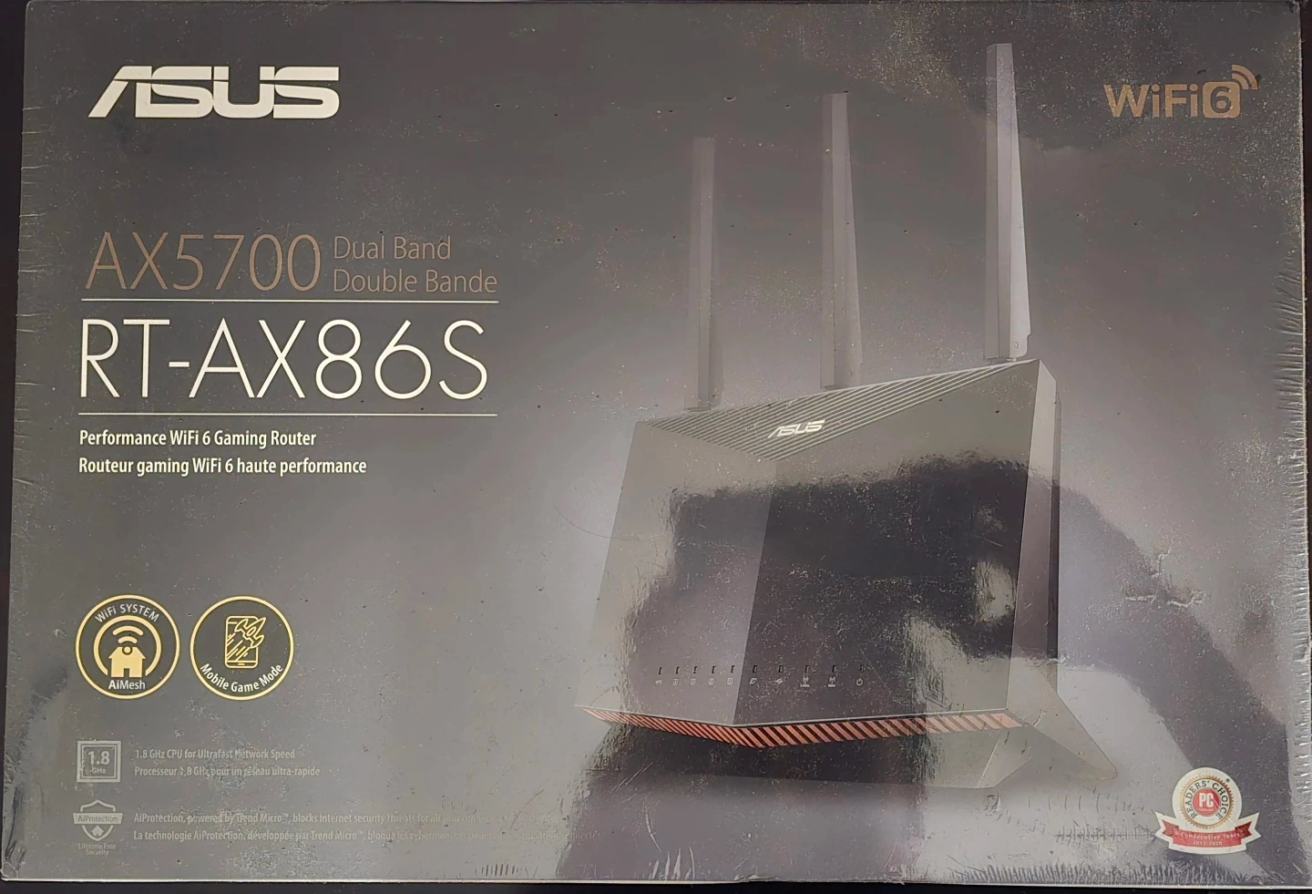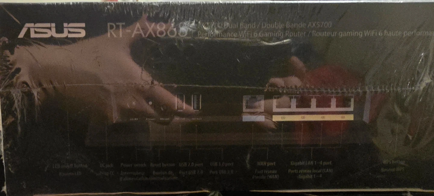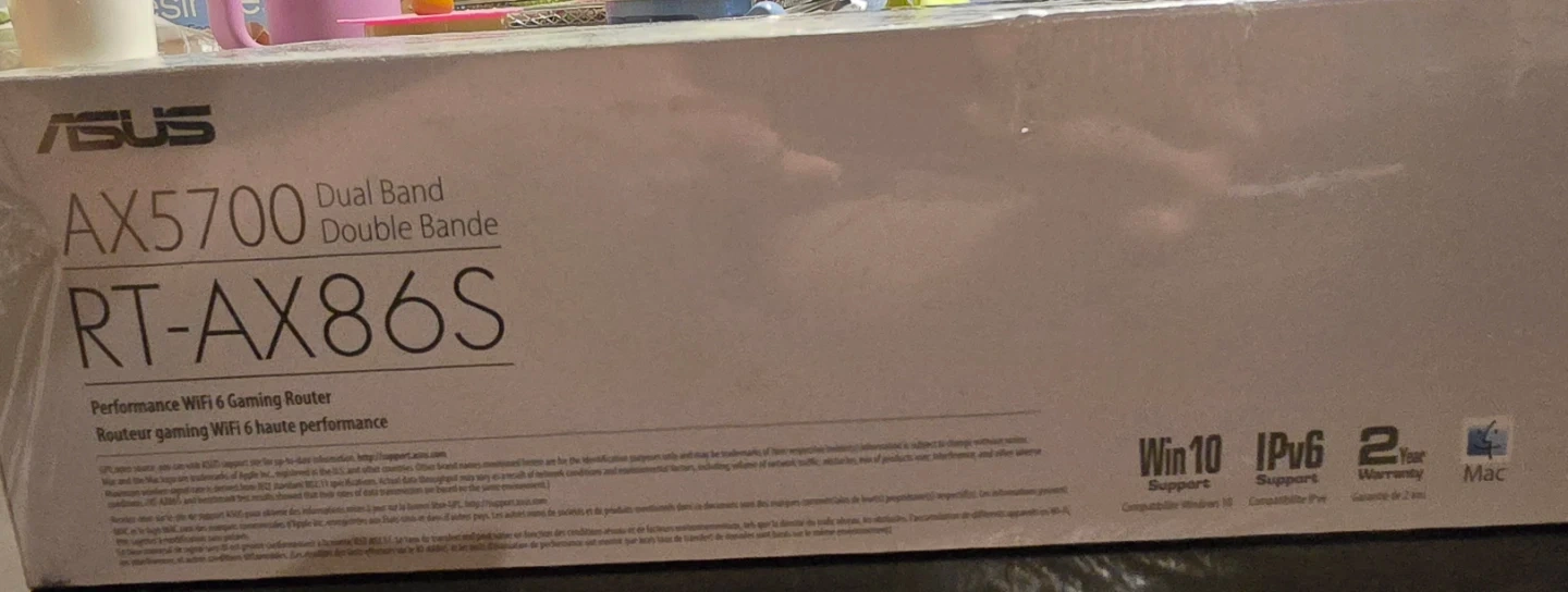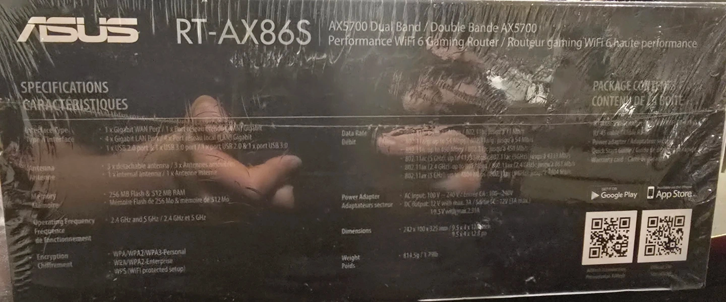 This is an ASUS RT-AX86S AX5700 dual-band WiFi 6 gaming router. It features a 2.5 Gigabit WAN port and a 1.8 GHz Quad-core CPU for ultra-fast speed. Includes 256 MB Flash and 512 MB RAM for robust performance.