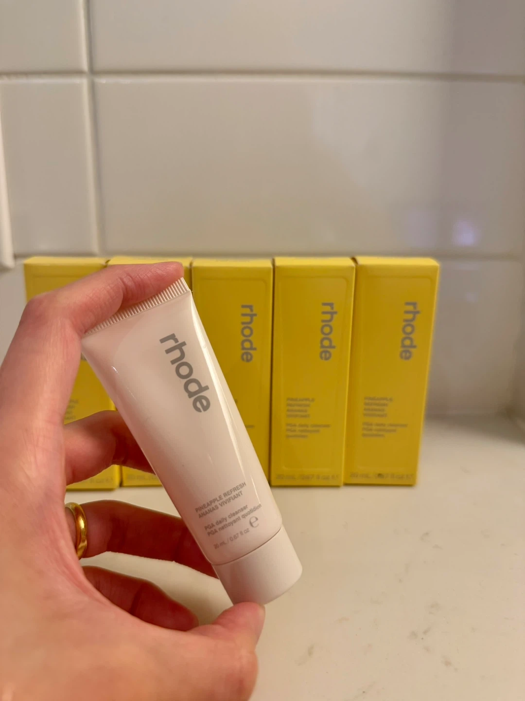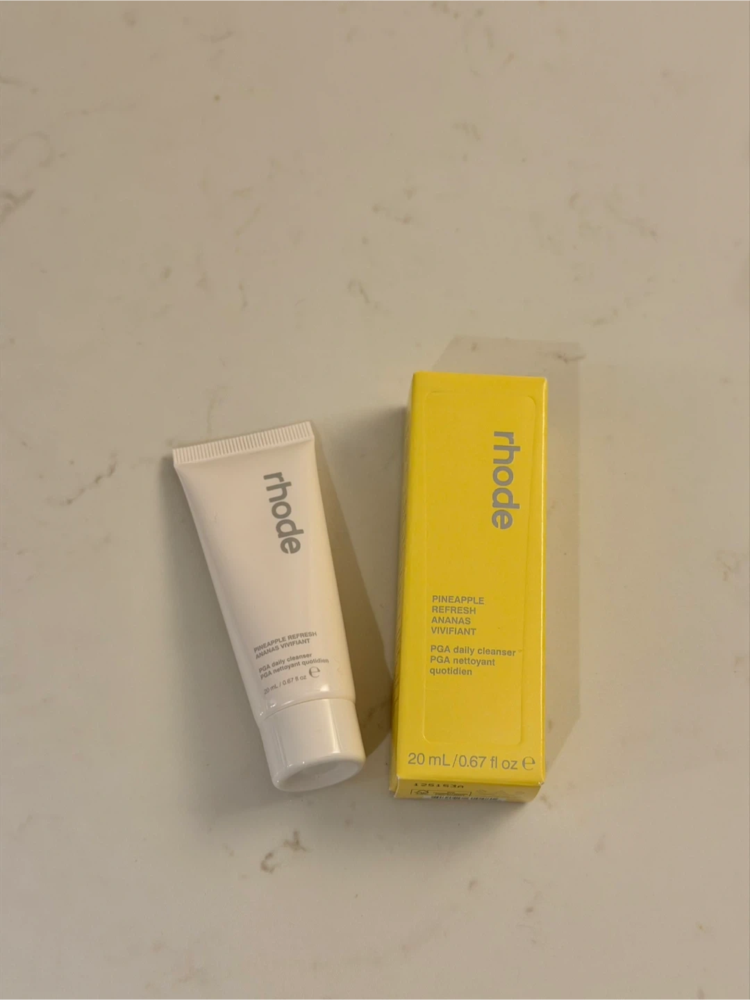 Rhode Pineapple Refresh AHA/BHA Gentle Cleanser. It's a 20 mL / 0.67 fl oz size. This daily cleanser gently polishes and purifies.
