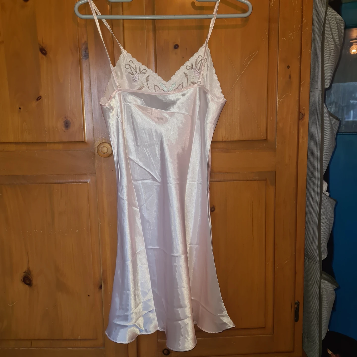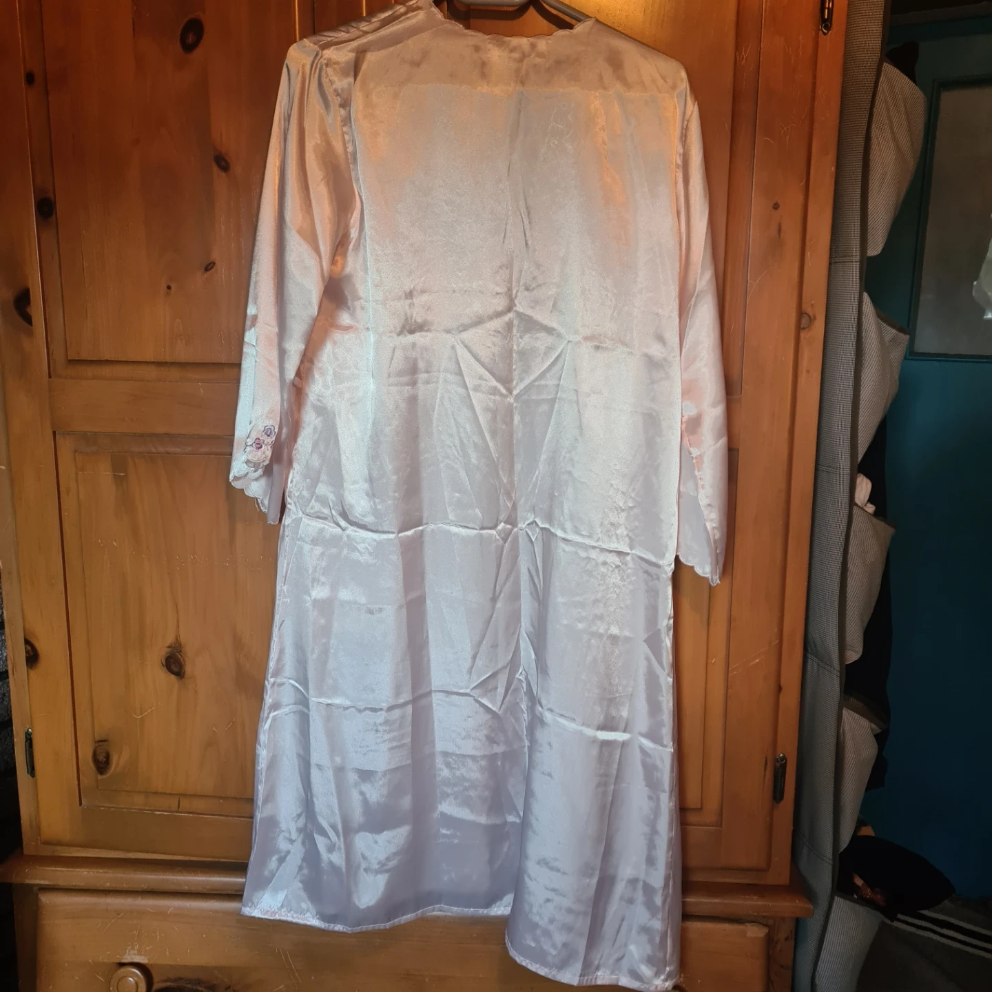 Pink Satin Camisole and Robe Set with Embroidery π
