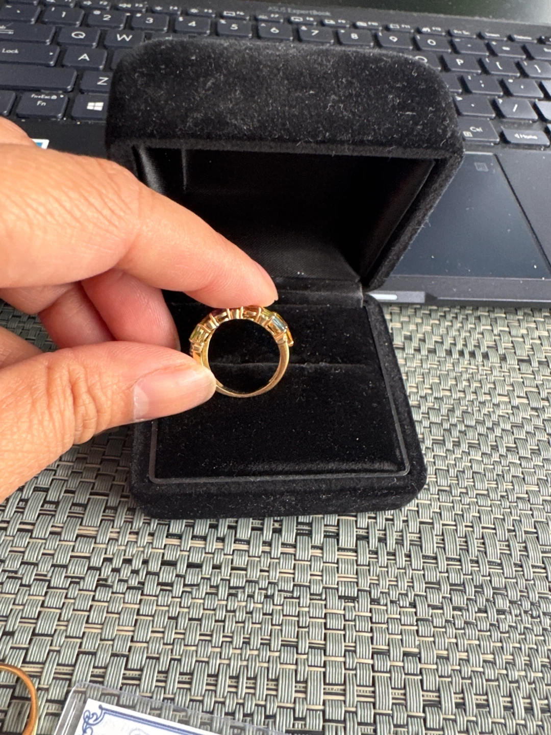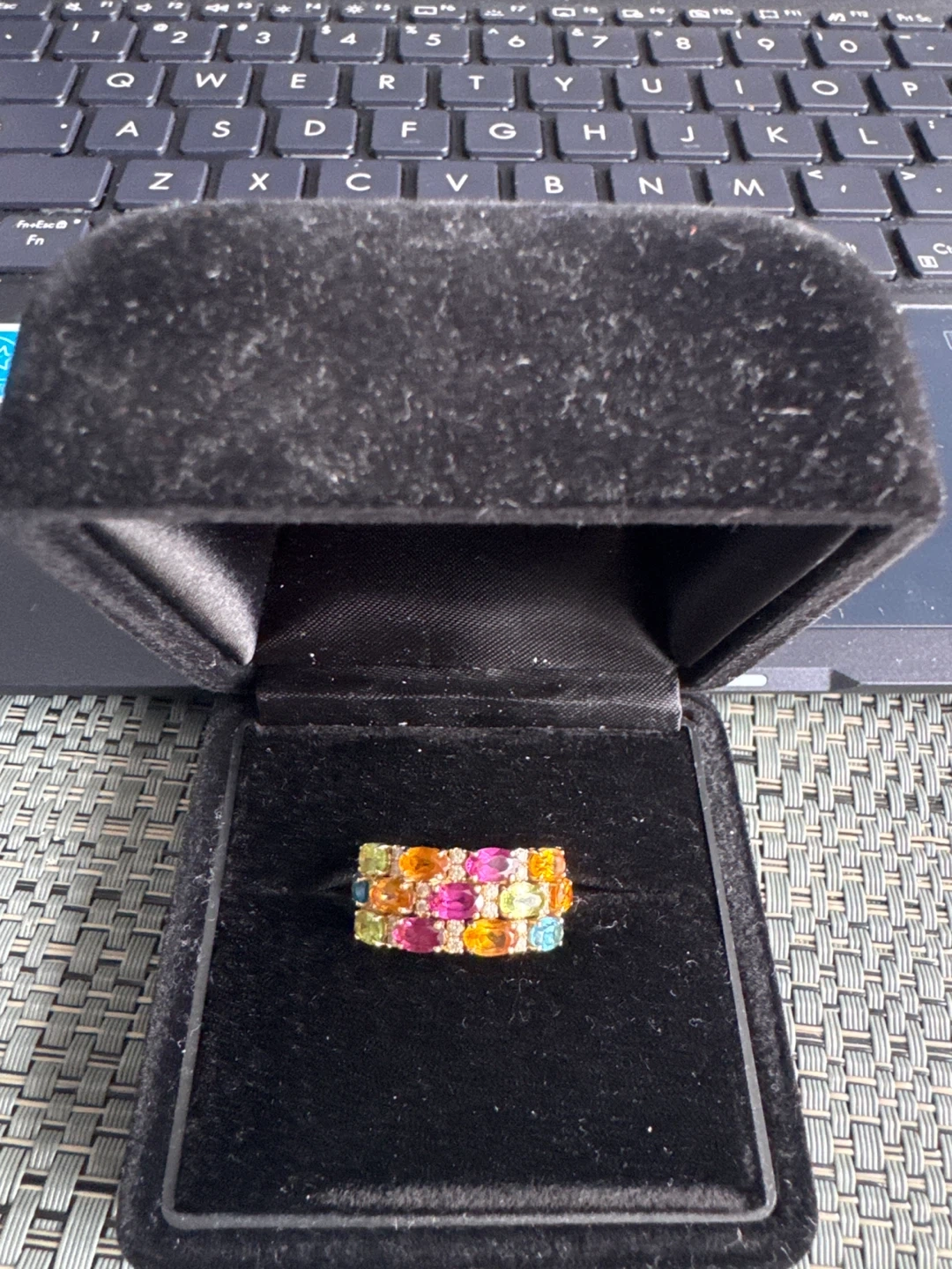 This ring features an oval mixed cut of natural quartz, with a total carat weight of 3.00ct D.30ct. It's marked K18, indicating 18K gold. This piece would add a colourful accent to any jewellery collection.