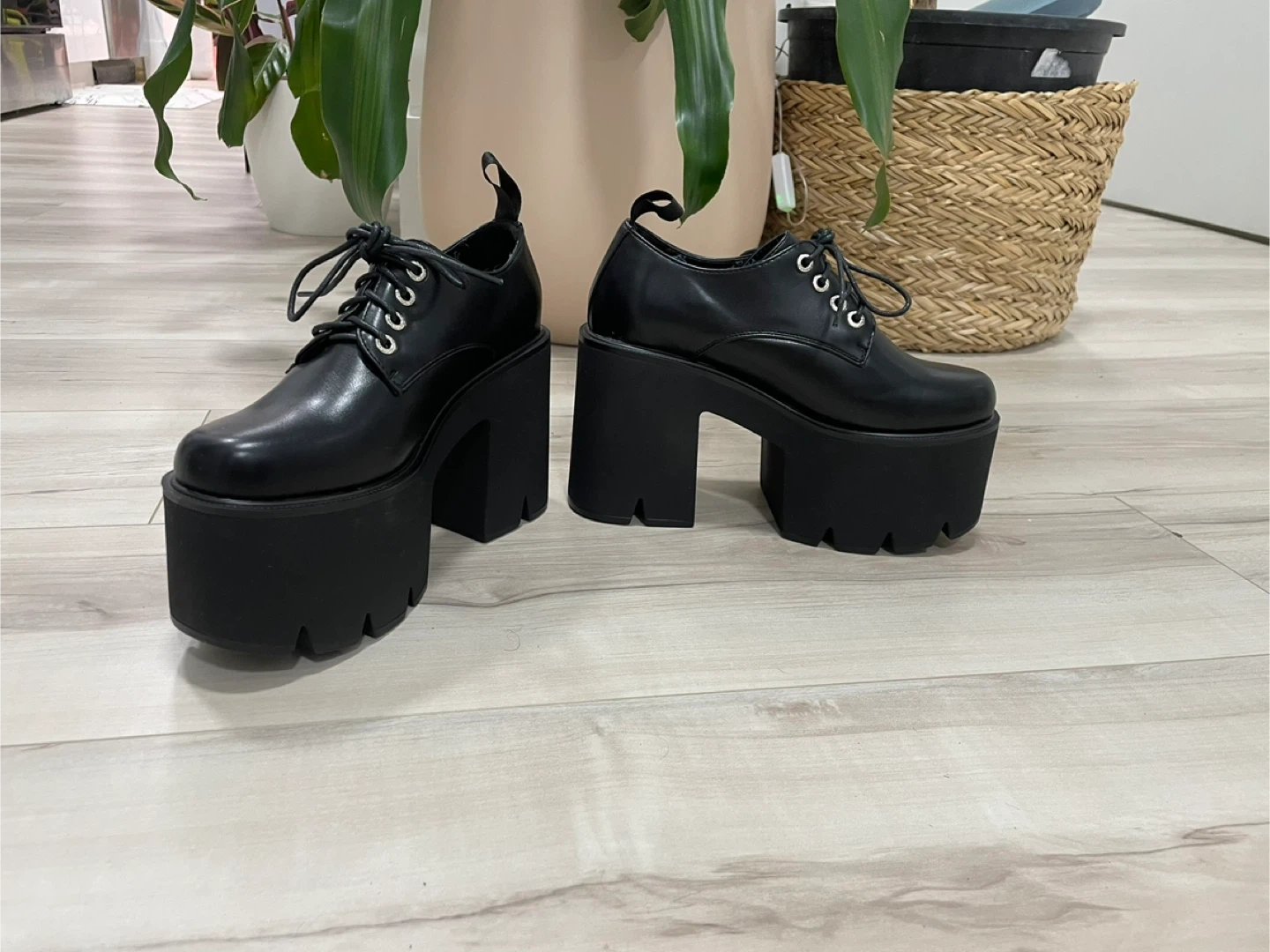 LAMODA Monster Black Chunky Platform Oxford Shoes