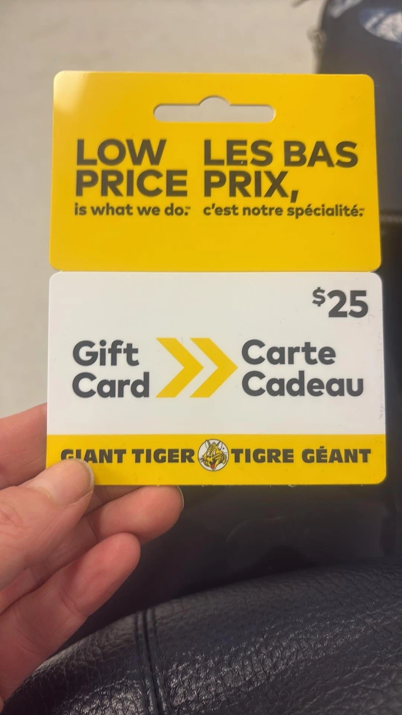 Buy & Sell$25 Giant Tiger Gift Card$25 Giant Tiger Gift Card$15This is a $25 Giant Tiger gift card. It's great for picking out whatever you need at the store!ConditionNewWHERE TO MEETCheck LocationView MapSELLERChrissssyStoney Creek251 review0 chats·0 favorites·5 viewsSEND CHAT TO SELLERHi Chrissssy! I’m interested in your listing.Hi Chrissssy! I’m interested in your listing.Get the Karrot app to chatSign In to chat