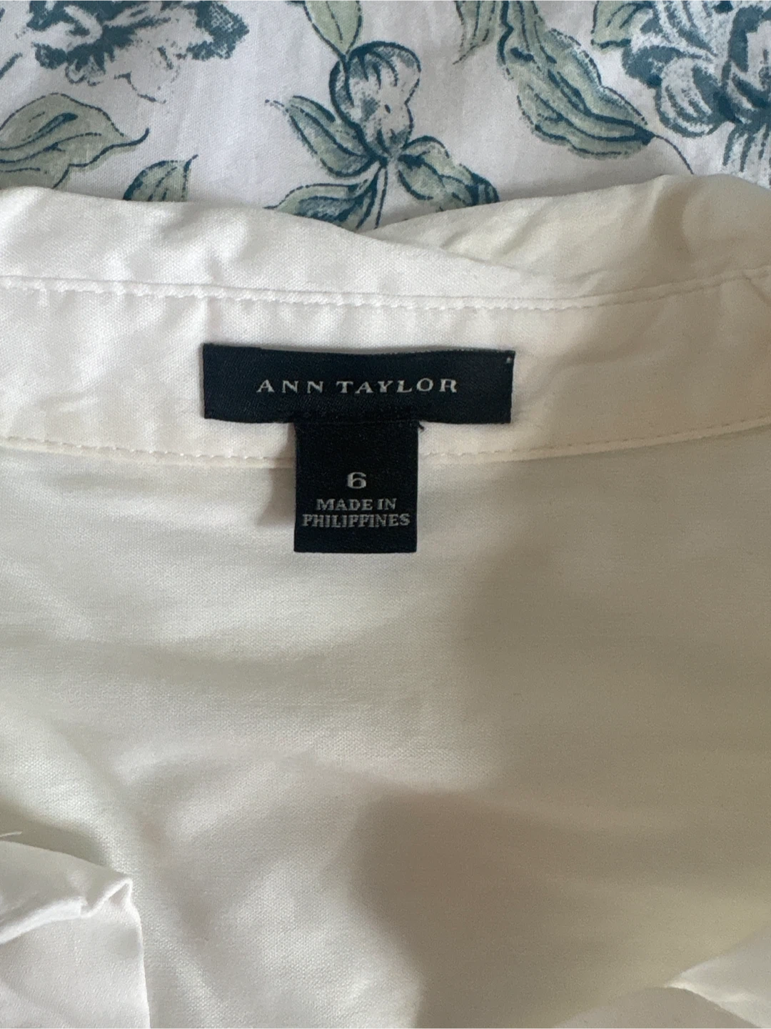 Ann Taylor long-sleeved white button-up shirt. Very well cut! Size 6. A classic piece for any wardrobe!
