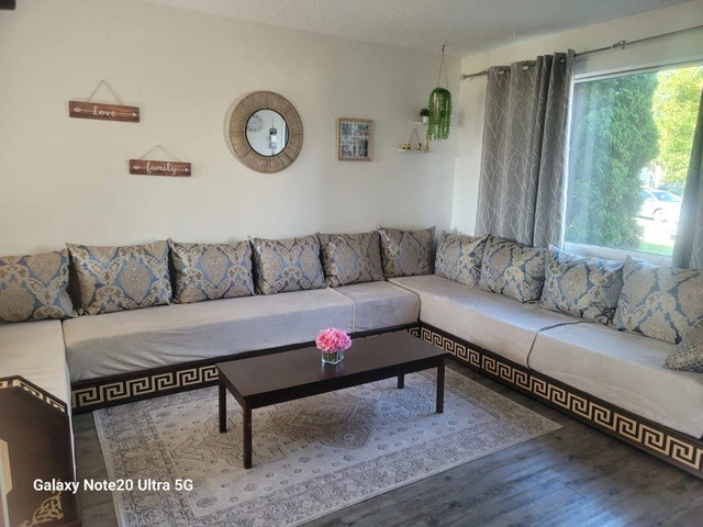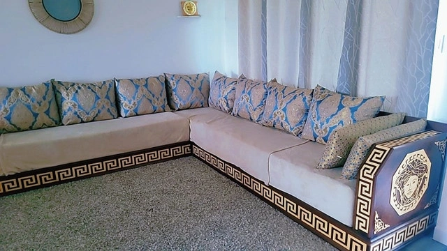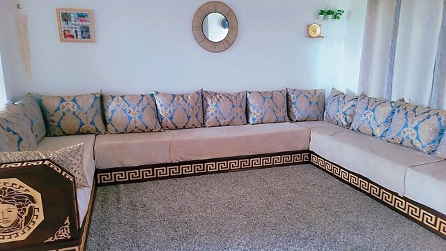 Elegant Arabic-Style-Theme Sofa Set. Beautiful brushed-theme corner sofa set in good condition, perfect for any living room. Selling only because I’m doing home renovations. Arabic style design. Extra piece included (can be placed anywhere). Comes with pillows & blankets. Spacious, comfortable, and well kept. Suitable for modern or traditional homes.