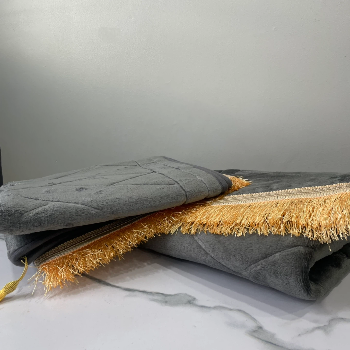 Set of three plush prayer rugs. They feature a textured leaf design with decorative tassels. Soft and comfortable for daily use.