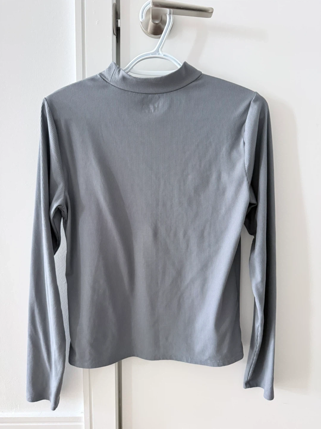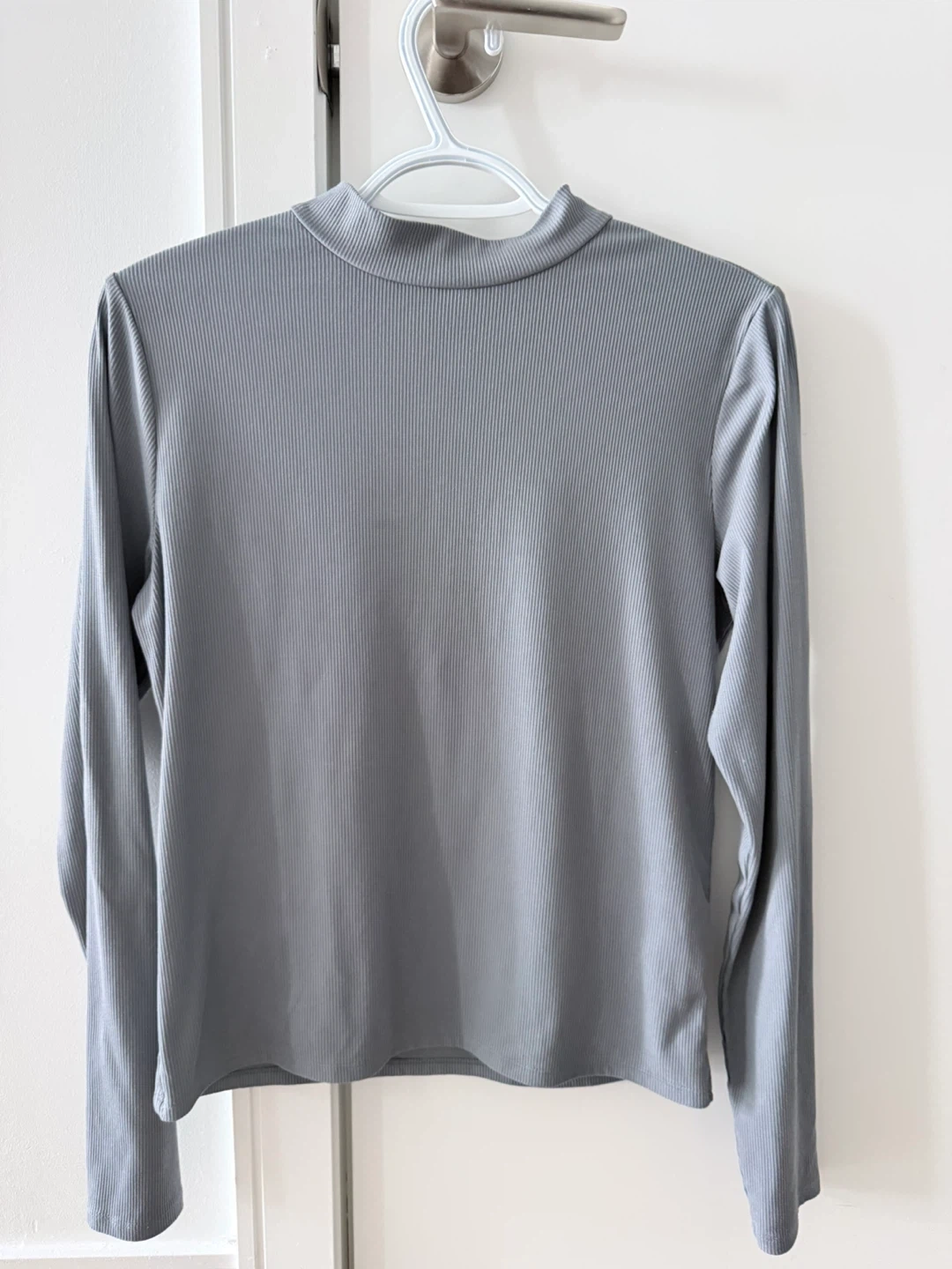 Light Grey Ribbed Long-Sleeve Mock Neck