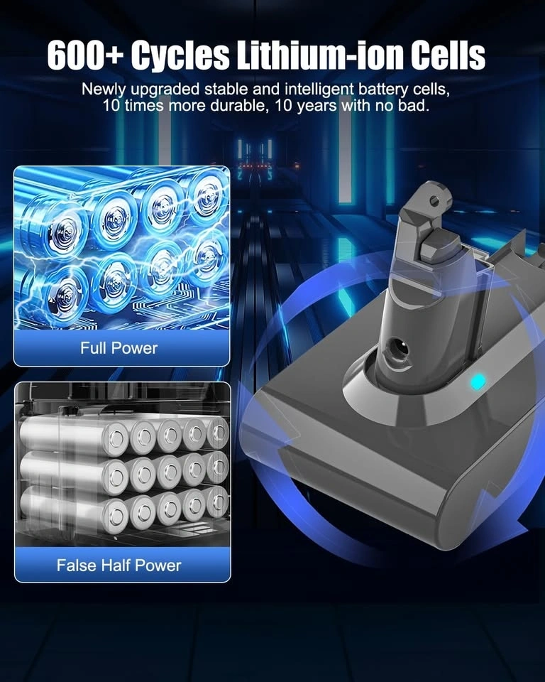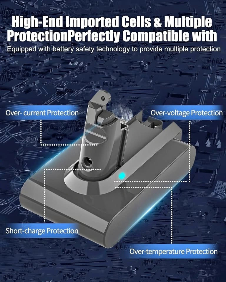 Powerful new lithium-ion battery for your vacuum. Has 6000mAh capacity and 21.6V. Comes with multiple protection features like over-current, over-voltage, short-charge, and over-temperature protection. Built with high-end cells, gives 600+ cycles and lasts long. Let me know if you're interested!